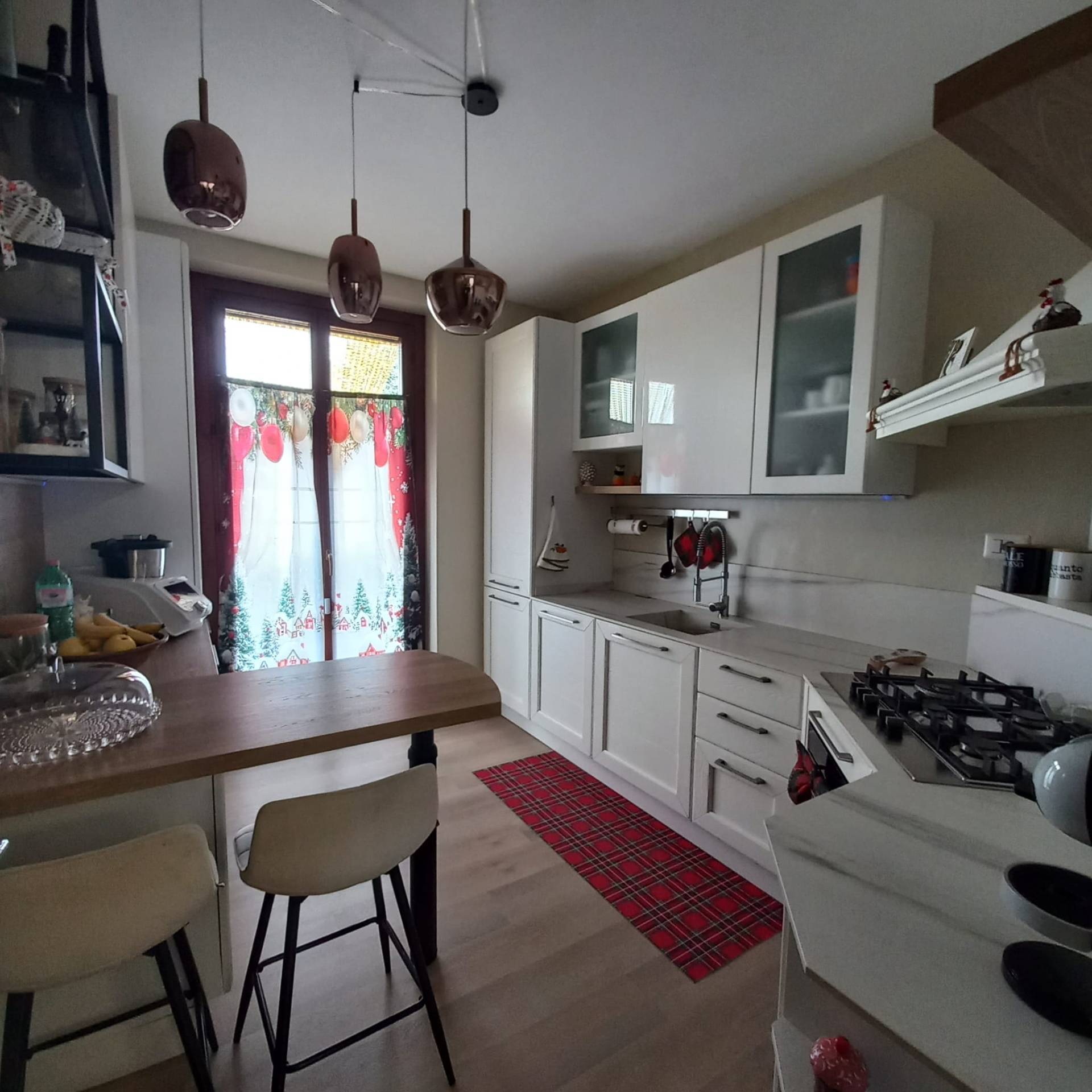 Sullo stesso livello troviamo un accogliente angolo cucina ed un bagno di servizio.