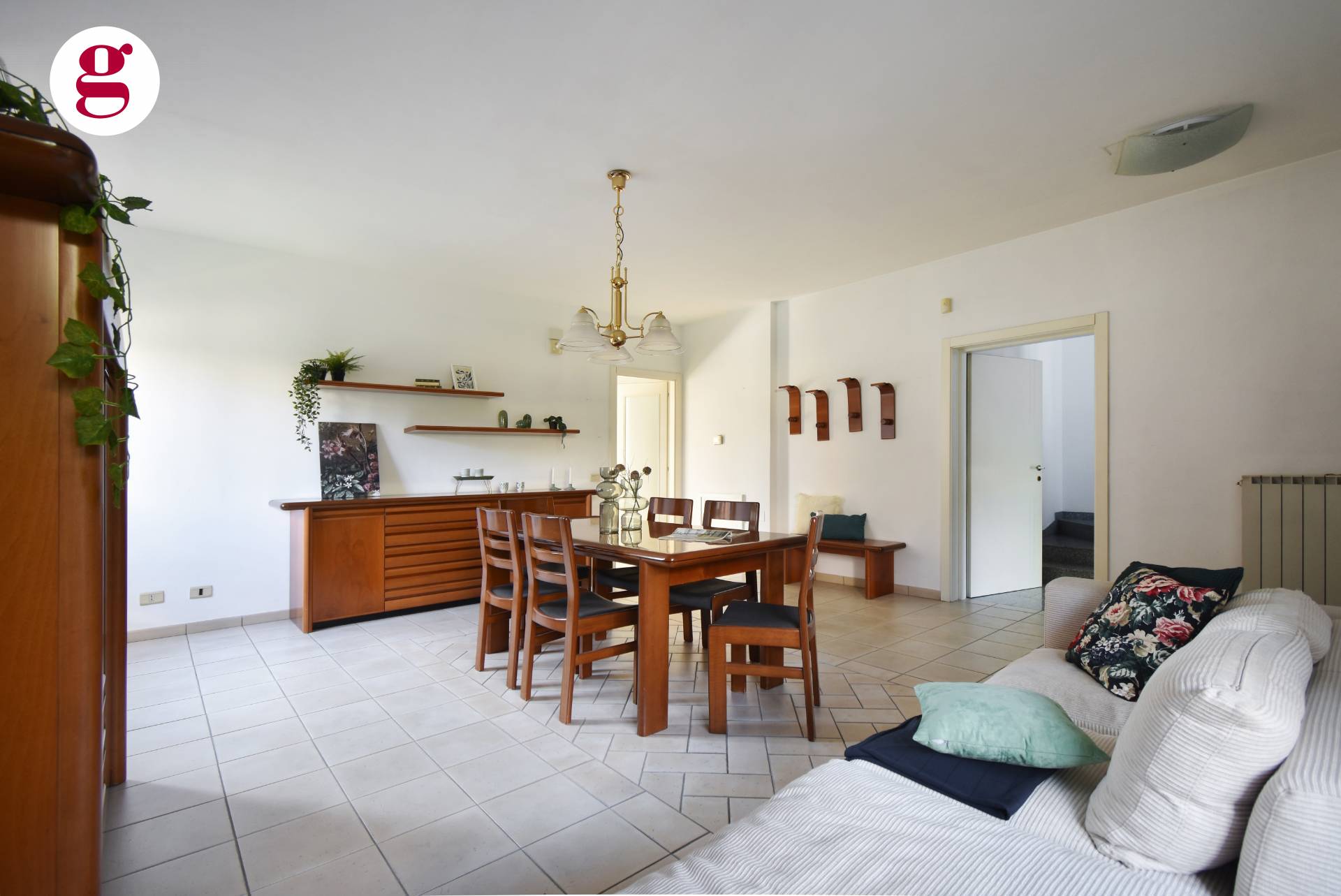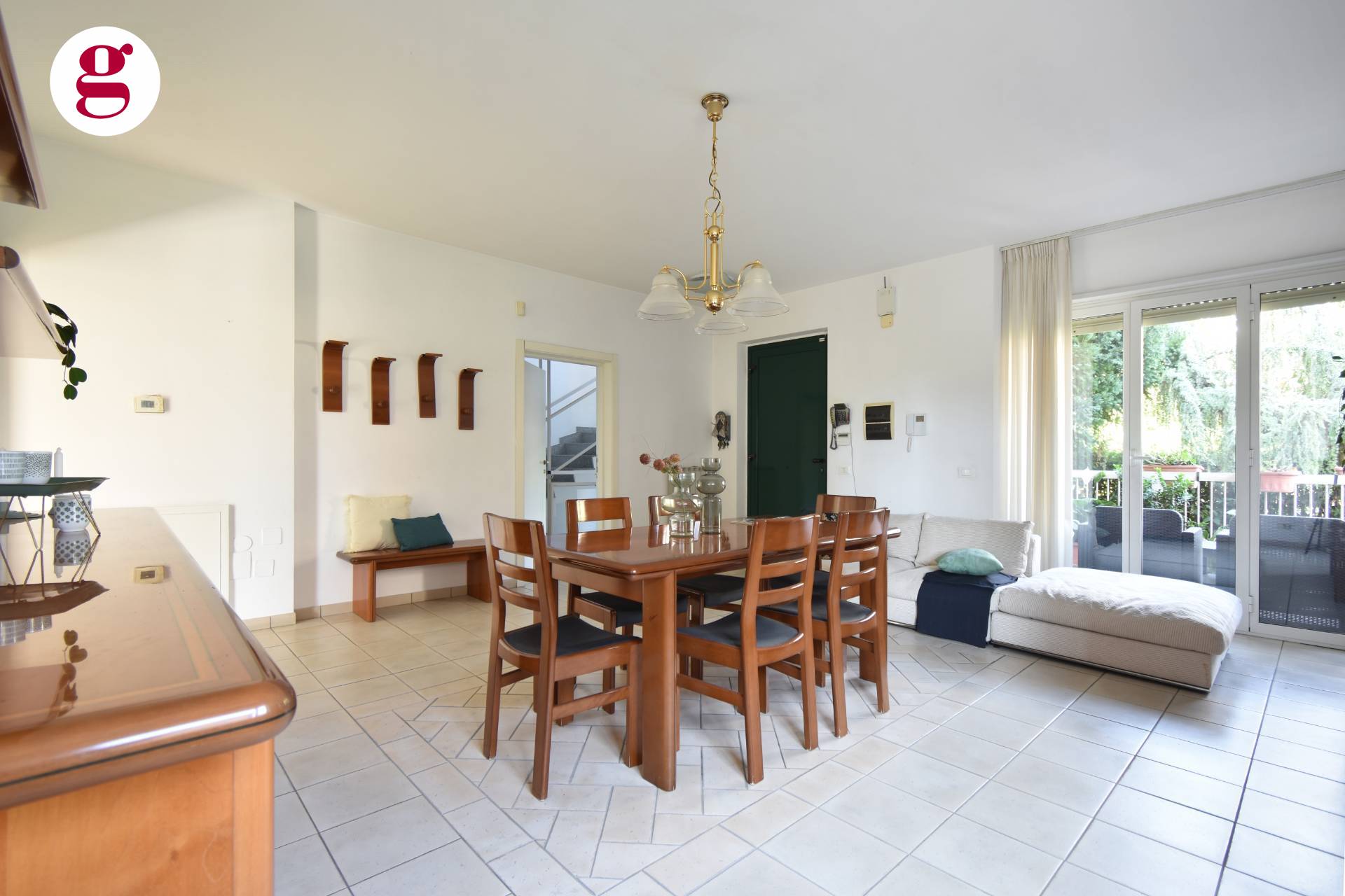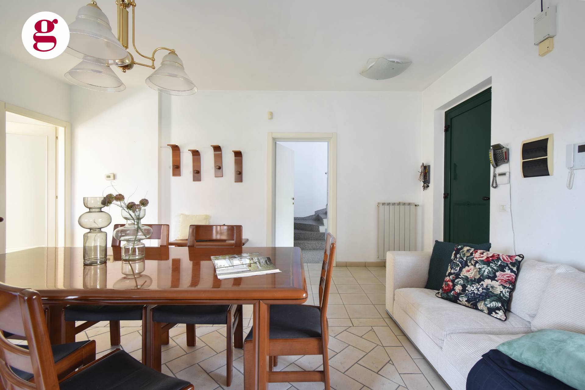 Al piano terra, un'accogliente zona giorno con un luminoso salone e una cucina abitabile si affacciano direttamente sull'ampio giardino privato.