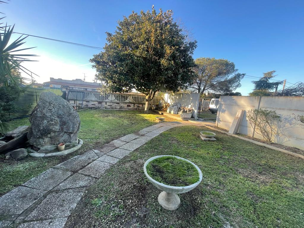 La villa ha un ingresso indipendente che offre la possibilit di un doppio parcheggio scoperto e continua verso il portone d'ingresso dell'abitazione attraverso un camminamento su piastre di cemento di ghiaia.