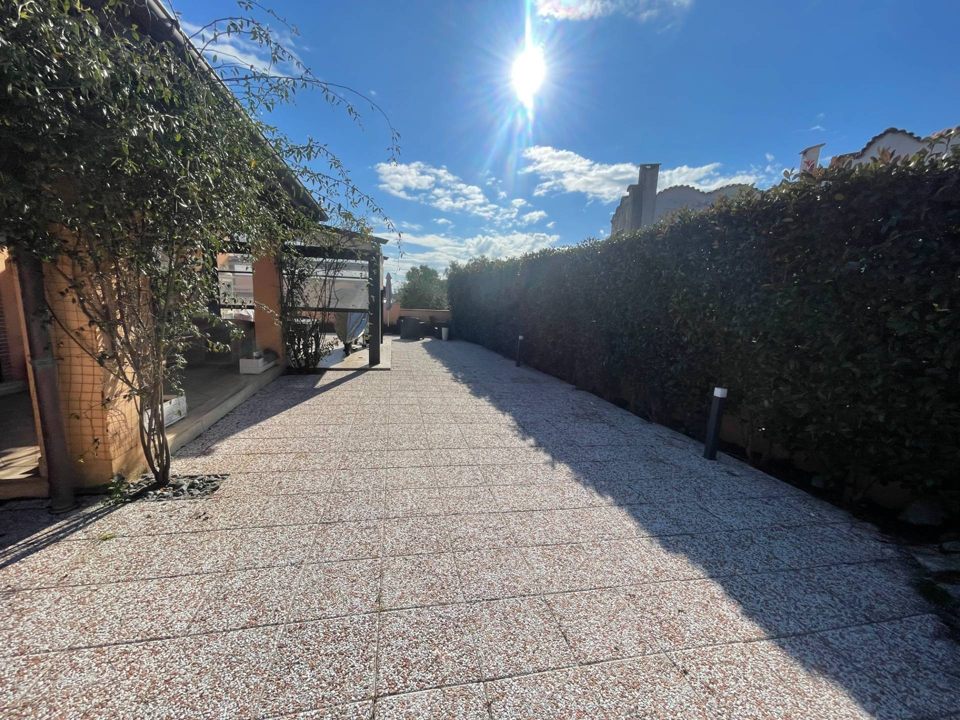 La villetta si sviluppa su due piani, per un totale di 100 metri quadrati, ed ha un giardino di circa 250 metri quadrati con accesso carrabile e con uno splendido patio verandato.