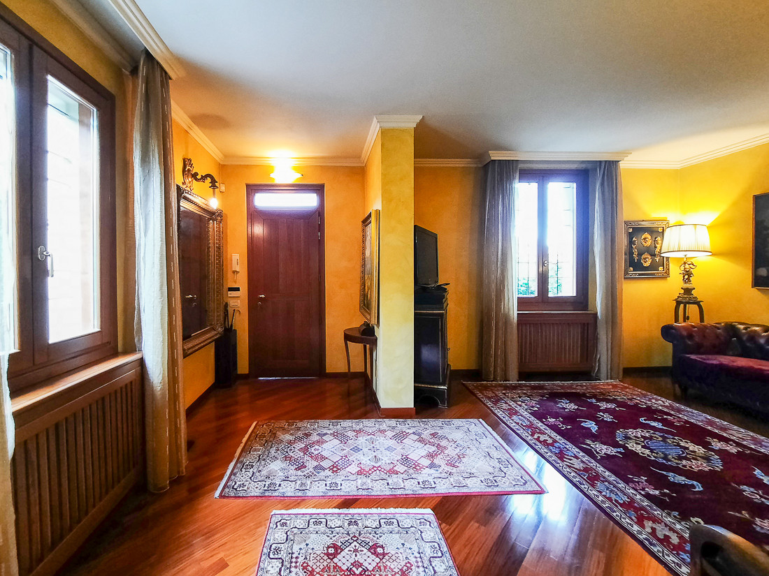 Il piano terra ampio e ben suddiviso permette di godere di un'ampia zona salotto conversazione con camino vicino all'ingresso, una sala da pranzo anch'essa dotata di camino passante con quello della zona soggiorno, dalla grande sala pranzo si intravvede la grande cucina con zona pranzo, la bella scala d'accesso ai piani superiori.