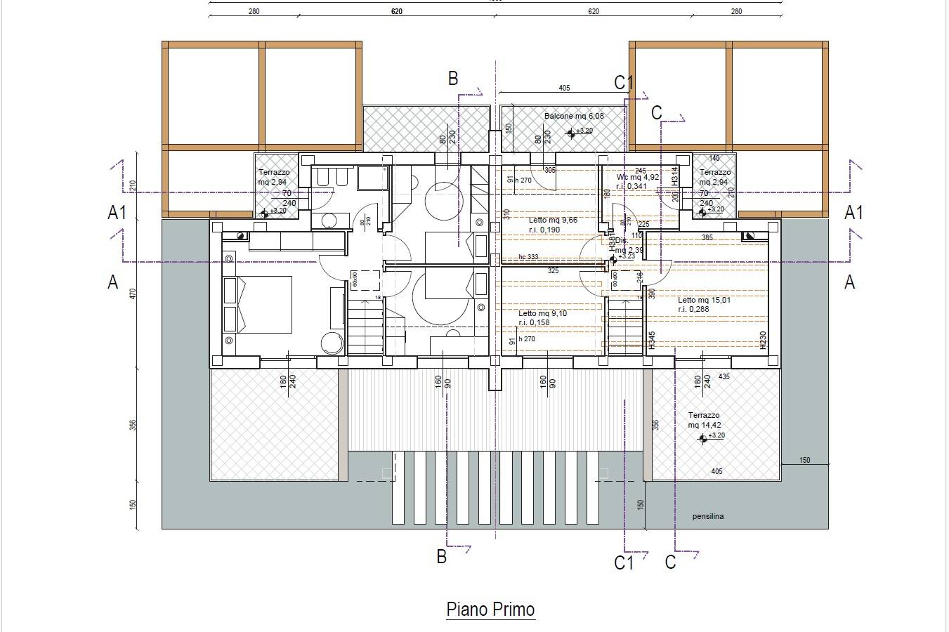 Al primo piano sono presenti tre camere da letto, disimpegno e bagno.