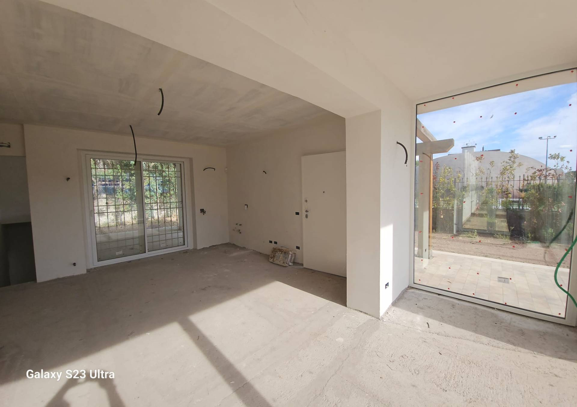 Nella zona centrale di Pomezia, in vendita villa bifamiliare, immersa nel verde, composta al piano terra da una luminosa zona living con doppio affaccio sul giardino completa di angolo cottura, disimpegno per accesso alla zona notte composto da due camere da letto e servizio.