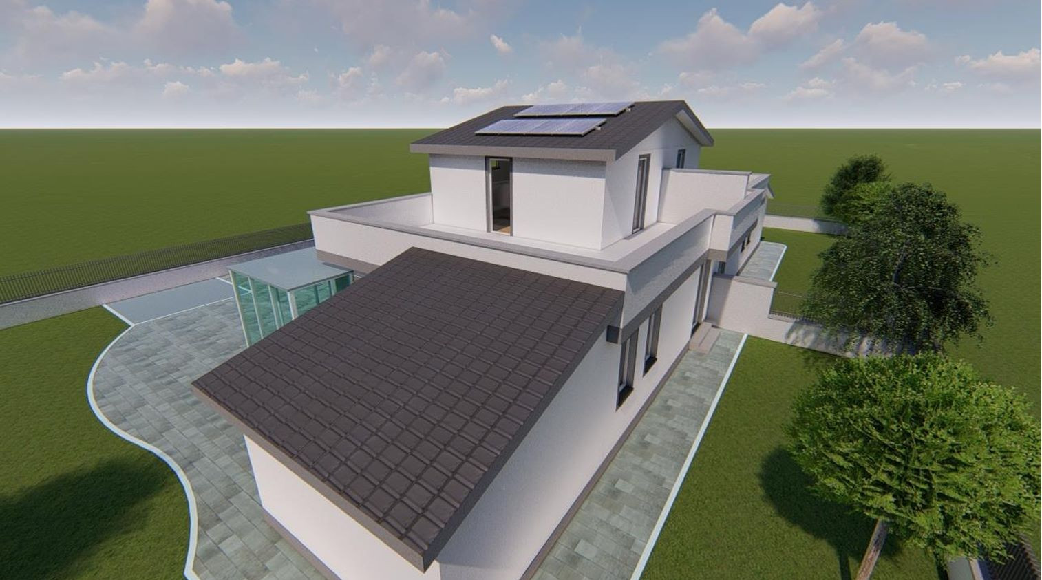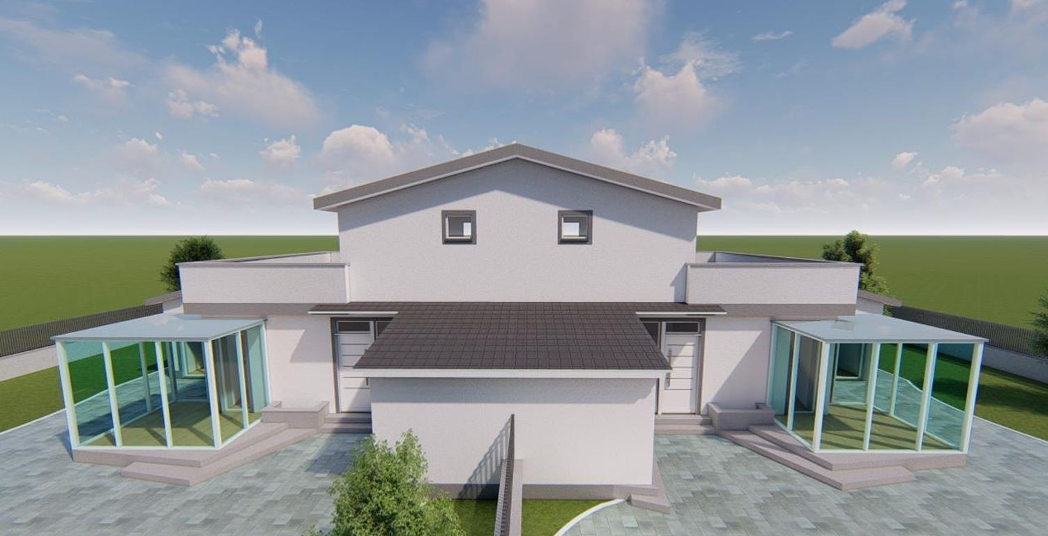 Si tratta della costruzione di due ville in bifamiliare su due livelli con giardino.