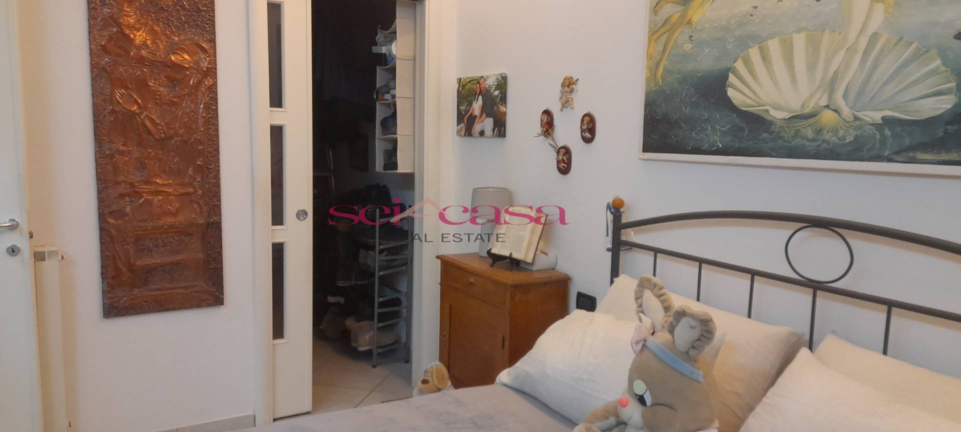 Dall' ampio terrazzo si ha accesso al grande soggiorno, alla cucina, alla camera matrimoniale con ampia cabina armadio e al bagno con doccia.