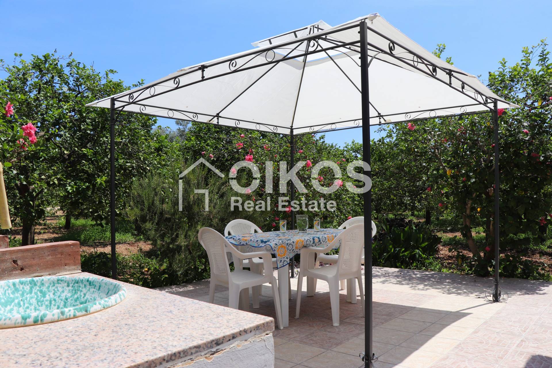 La parte esterna ha di pertinenza un terreno di circa 8000 mq con alberi di limoni e da frutto.