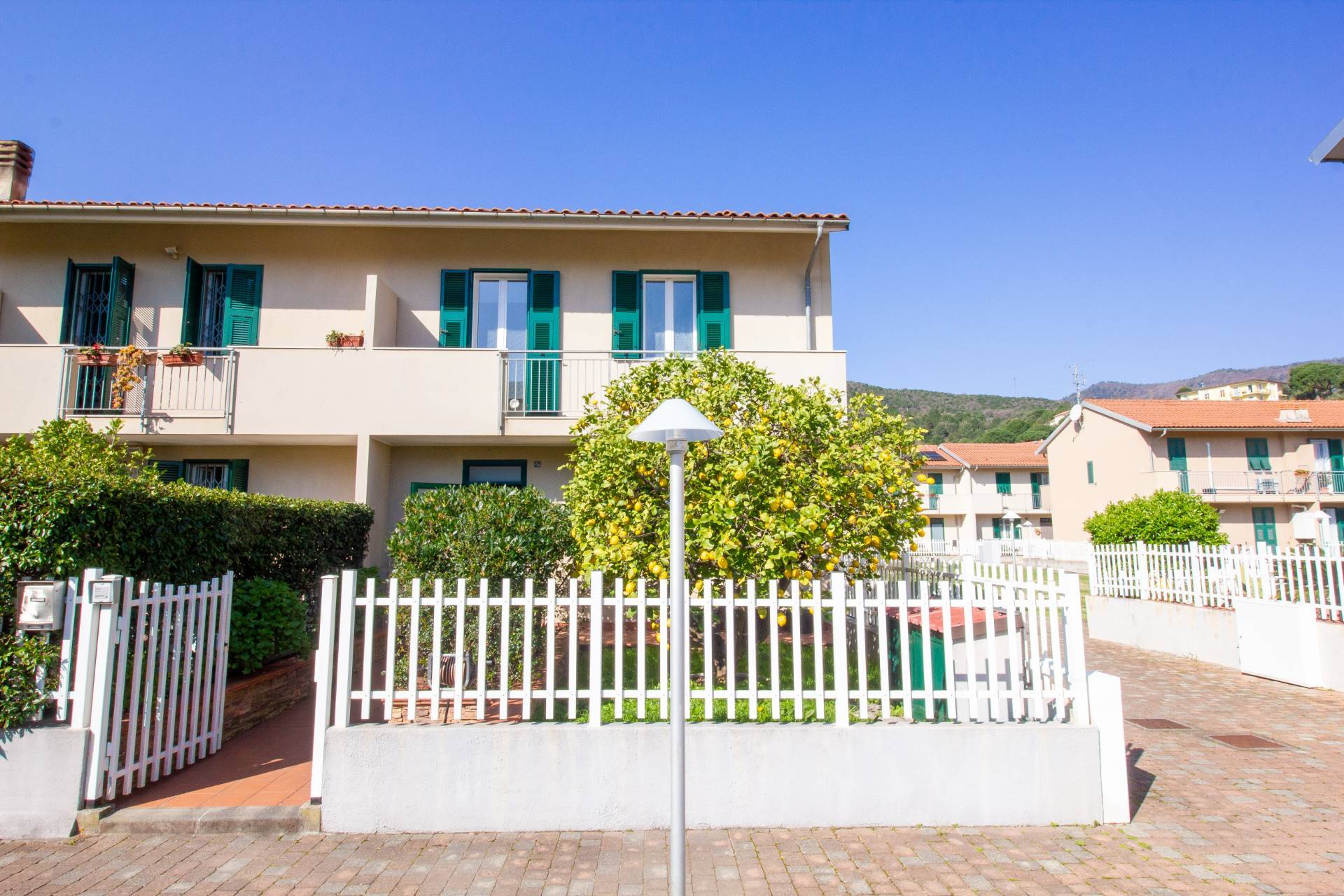 La propriet si distingue per la sua collocazione angolare, che garantisce maggiore indipendenza rispetto alle unit centrali, oltre alla presenza di giardini privati su due lati, ideali per vivere appieno gli spazi esterni in un contesto tranquillo e immerso nel verde.