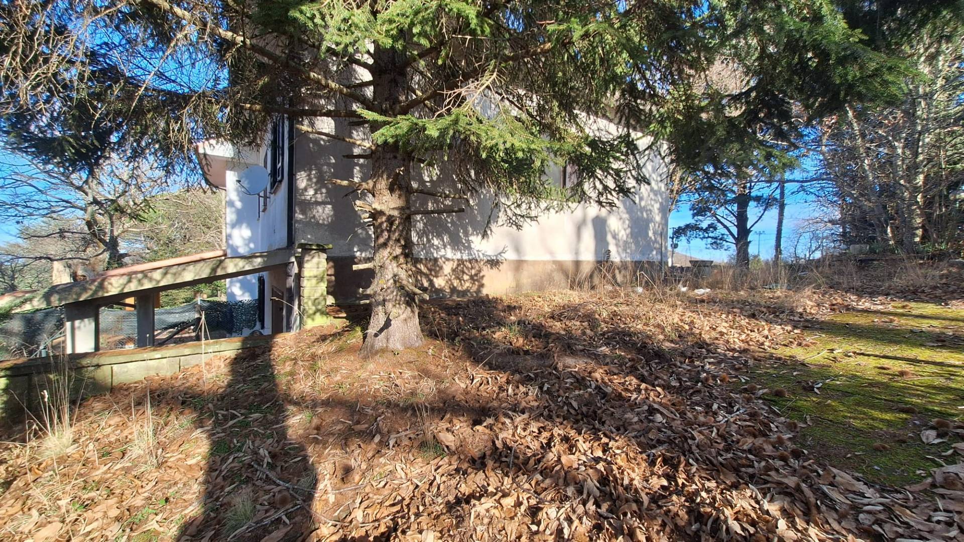 Allesterno, la villetta circondata da un terreno in parte boschivo, perfetto per godere della natura, creare unarea relax allaperto, coltivare un orto o realizzare uno spazio verde su misura.