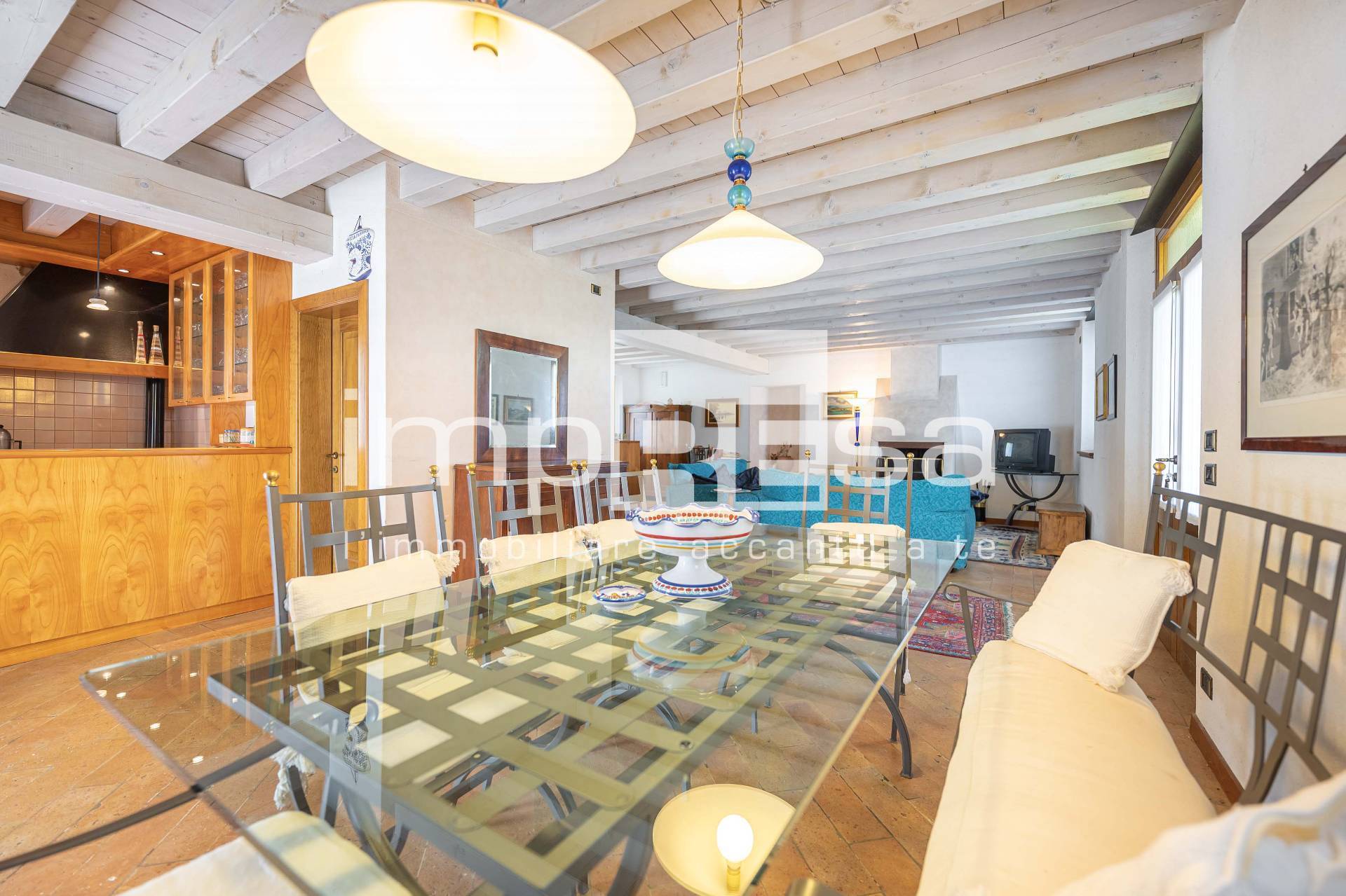 Il piano terra un open space comodamente diviso in zona living con caminetto, zona pranzo e zona cucina (fornita di cucina a legna). Nel sottoscala stato ricavato un locale tecnico che funge anche da lavanderia e bagno di servizio.