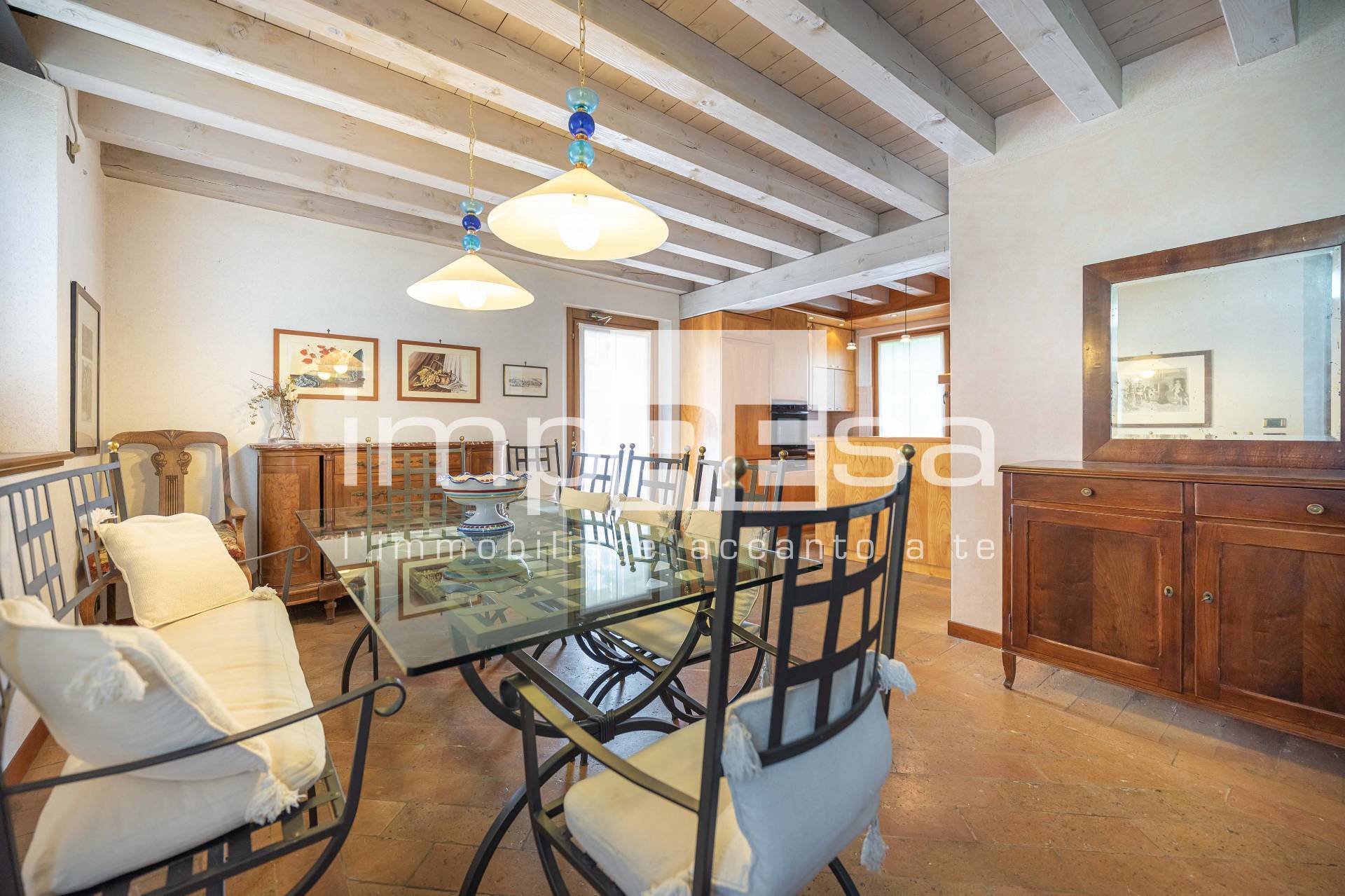 Il piano terra un open space comodamente diviso in zona living con caminetto, zona pranzo e zona cucina (fornita di cucina a legna). Nel sottoscala stato ricavato un locale tecnico che funge anche da lavanderia e bagno di servizio.