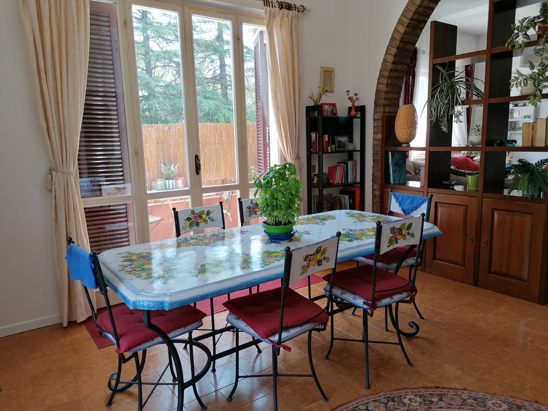L'abitazione, completamente ristrutturata negli impianti ma con necessit solo di qualche opera di ammodernamento, si compone di: 3 ampi locali adibiti a taverna con camino ed accesso al comodo porticato, camera matrimoniale, garage, vano caldaia e bagno al piano terra; ampio e luminoso salone con accesso diretto al terrazzo, cucina abitabile, disimpegno, 2 ampie camere matrimoniali con accesso diretto al balcone e bagno finestrato con vasca al 1°piano; soffitta finestrata con altezza max 140 cm al 2° piano.