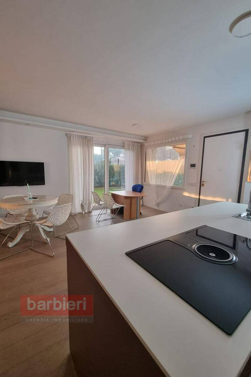 L'immobile al piano terra si compone di uno spazioso soggiorno angolo cottura con porta finestra che esce sullo spazioso giardino privato, bagno con box doccia, camera da letto matrimoniale e cameretta con letto a castello.