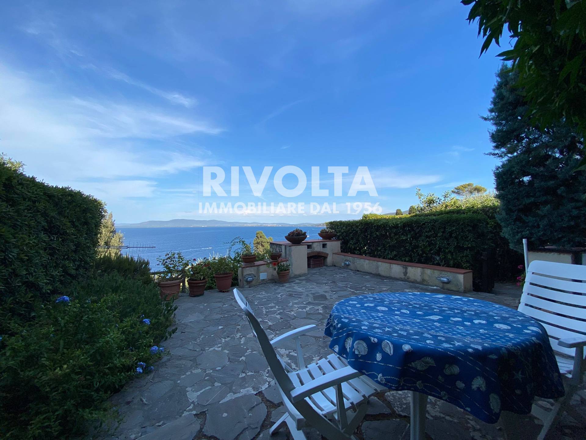 Rivolta Affitta - in Esclusiva - Porzione di villetta a schiera CON VISTA SUL MARE MOZZAFIATO all'interno di un residence privato a Porto Santo Stefano composta da: ingresso, soggiorno e cucina abitabile entrambe con portefinestre che danno sullo spazio esterno, una camera da letto matrimoniale con bagno en-suite, seconda camera con due letti singoli, un bagno e ripostiglio.