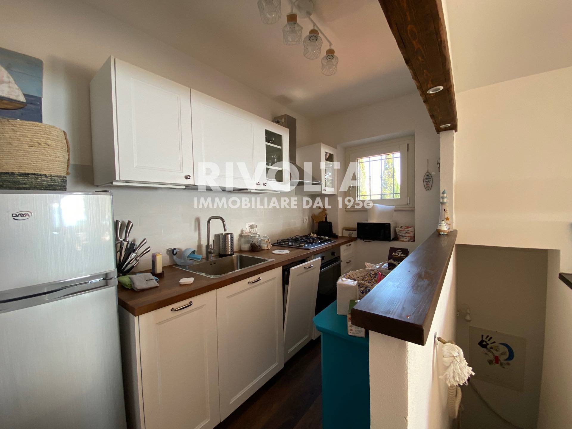 La villa composta da ingresso nella luminosa zona giorno con tavolo da pranzo, angolo cottura e un bagno di servizio.