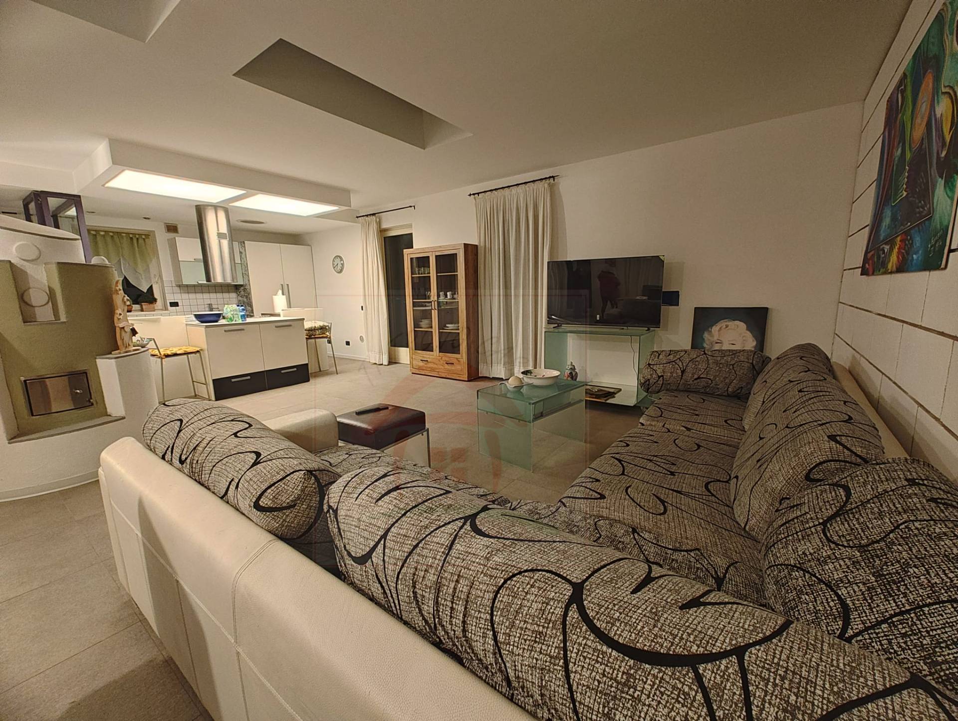 La soluzione si articola su 4 livelli cos disposti: piano interrato: garage doppio con lavatoio, cantina e ampio deposito piano terra: lavanderia con servizi e doccia idromassaggio, disbrigo primo piano: ampia zona giorno con moderna cucina a isola, bagno di servizio, tre balconi secondo piano sottotetto: due stanze, bagno con vasca idromassaggio e angolo doccia, locale tecnico La soluzione dotata di basculante motorizzato, pannelli solari ed impreziosita da un'elegante stufa ad Olle nel soggiorno.