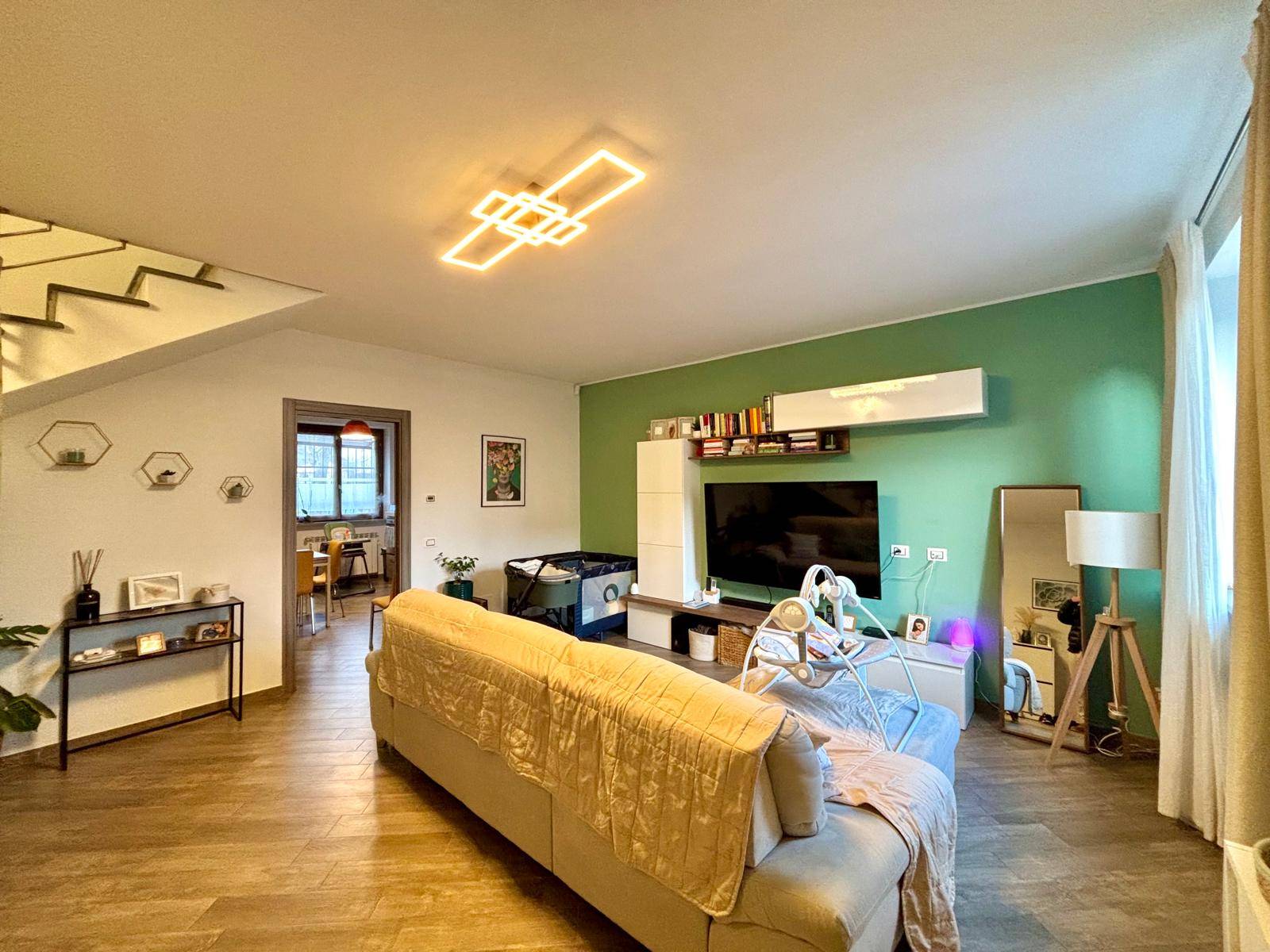 Al piano superiore presente la zona notte dove vi si trova 1 camera da letto matrimoniale con CABINA ARMADIO, 1 camera singola con un grosso ripostiglio sfruttabile, 1 ampio bagno con doppio lavabo, box doccia e sanitari sospesi, Terrazzino, presente BOX AUTO e 1 posto auto scoperto.