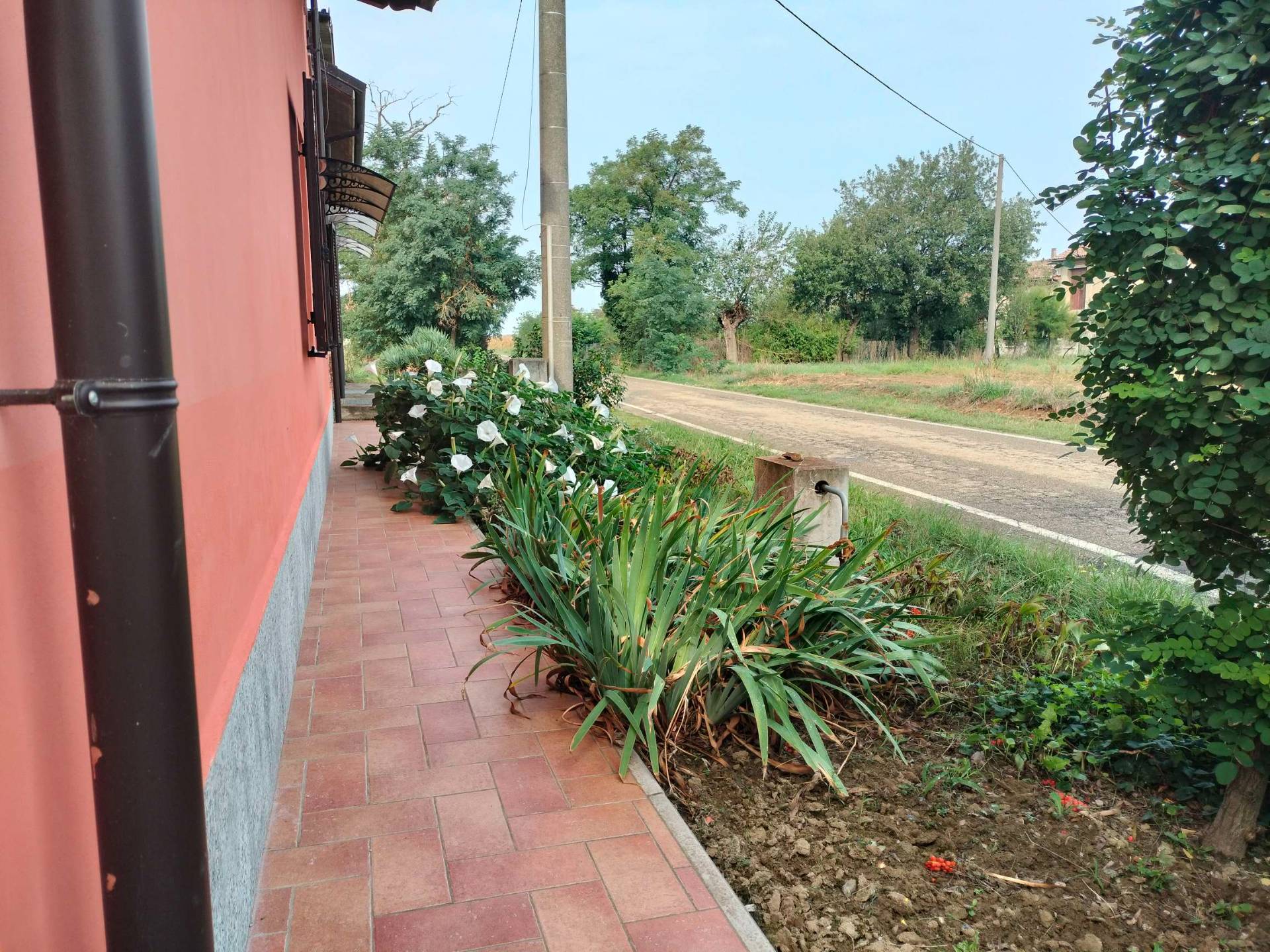 Castelceriolo, periferia, immersa nella tranquillit della campagna, casetta semi indipendente libera su tre lati con sedime di propriet suddiviso in orto, cortile, locale ricovero attrezzi/lavanderia e portico.