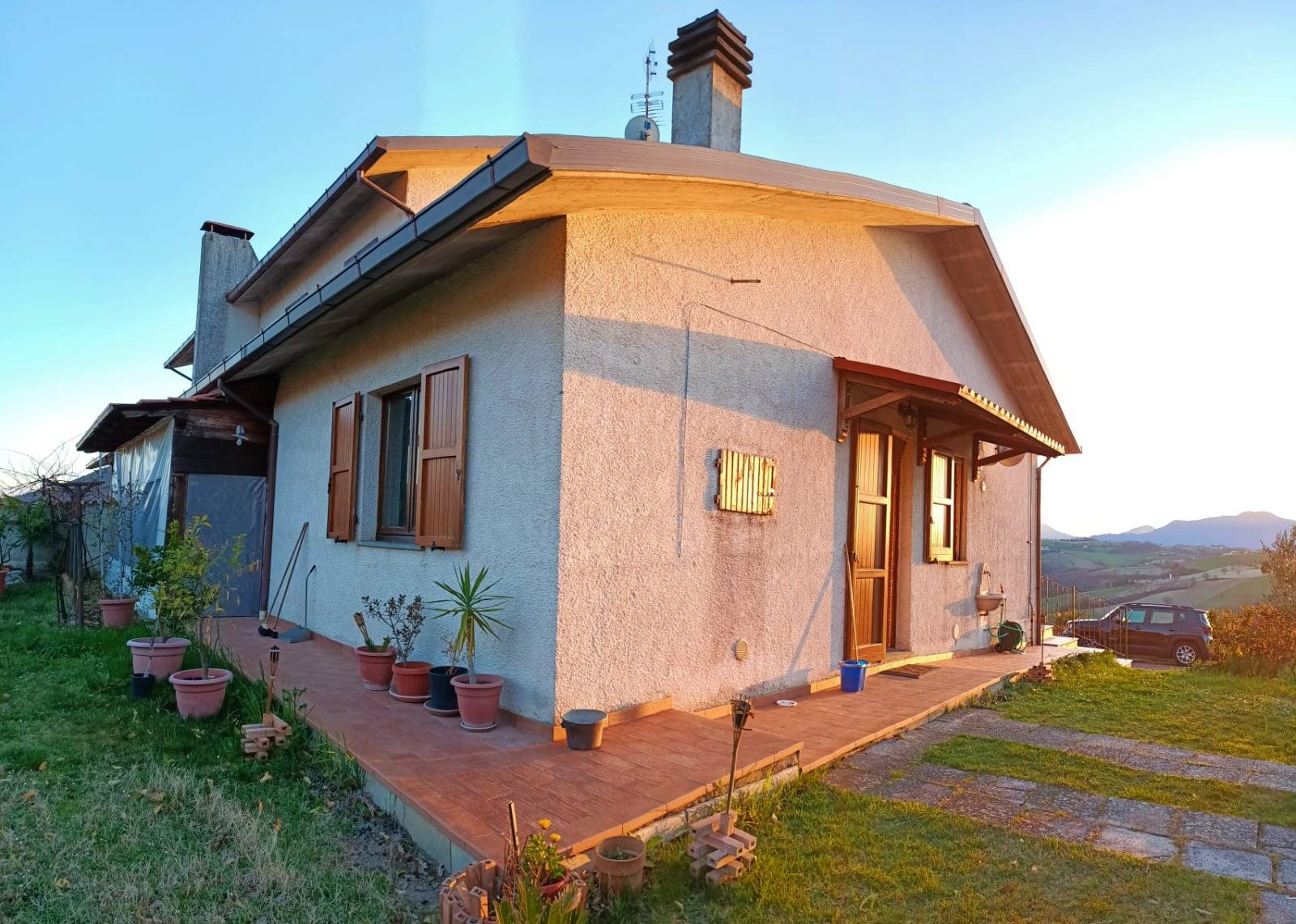 Arcevia: In localit Santa Croce, in posizione dominante e con panorama stupendo a 360°, si trova questa spaziosa e ben curata villetta a schiera su due livelli, con una superficie totale di 220 metri quadrati tra abitativo ed accessori annessi, e 160 metri quadrati calpestabili circa di abitazione.