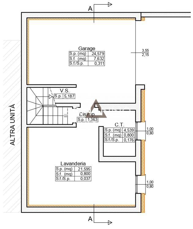 Al piano interrato dispone di una taverna di 22 mq, una spaziosa lavanderia, centrale termica e un garage singolo.