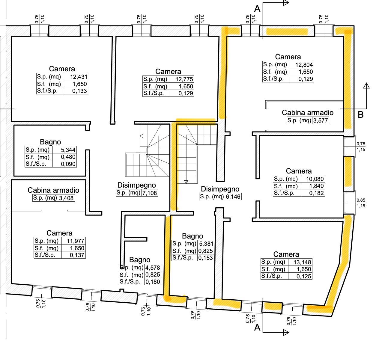 Al piano primo la zona notte con 3 camere da letto caratterizzata dalla travatura in legno a vista ed composta da una camera matrimoniale con cabina armadio, una camera doppia, una cameretta/studio e bagno.
