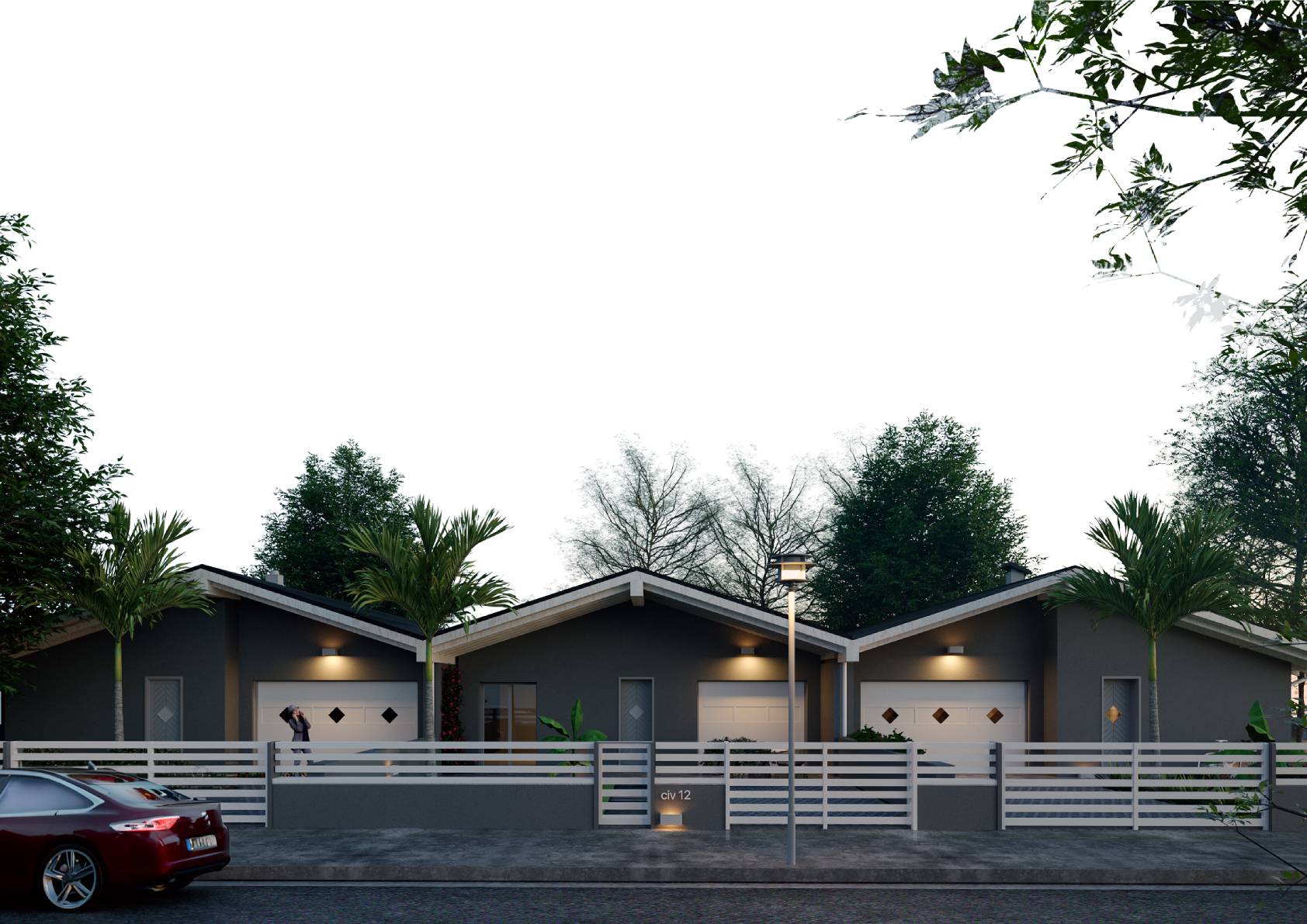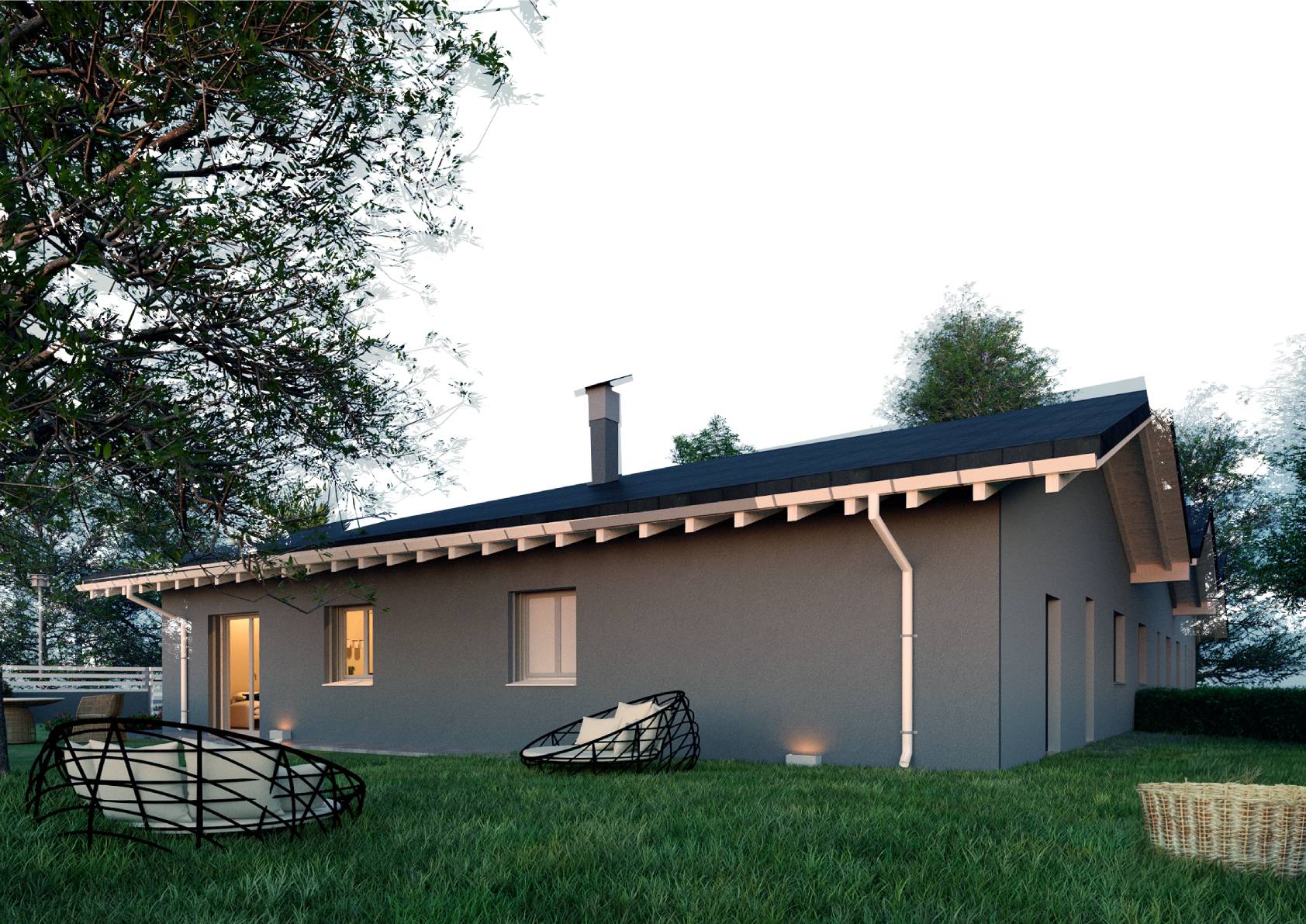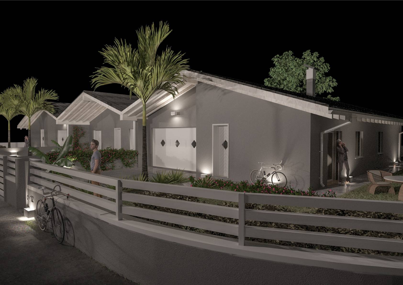 La villetta fa parte di un complesso residenziale di sole tre unit, con un'ampia area verde comune e posto auto privato.