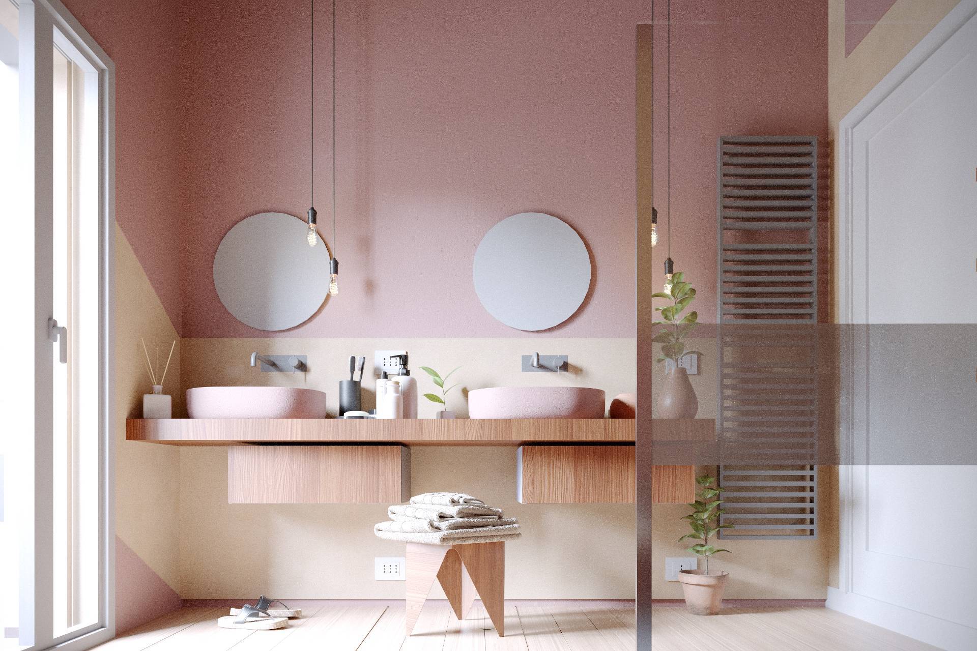 si accede attraverso il corridoio, alle tre spaziose camere da letto e due bagni completi con box doccia.