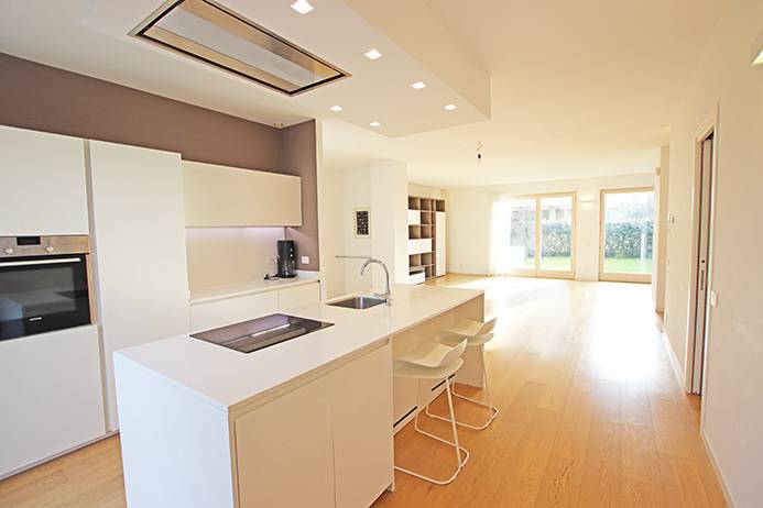 L'immobile elegantemente e lussuosamente rifinito in ogni dettaglio, dotato di pavimentazioni in parquet e moderno gres nei bagni, cucina con piano induzione e sistema di estrazione fumi a soffitto, riscaldamento e raffrescamento a soffitto con impianto di ventilazione meccanizzata e deumidificazione di ultima generazione, impianto di allarme interno ed esterno, tapparelle motorizzate tipo sun block, infissi ad alte prestazioni, il giardino esterno piantumato con siepi e piante ornamentali, dotato di illuminazione, particolarmente godibile nella bella stagione per pranzi,. cene e feste all'aperto in continuit con la zona giorno.