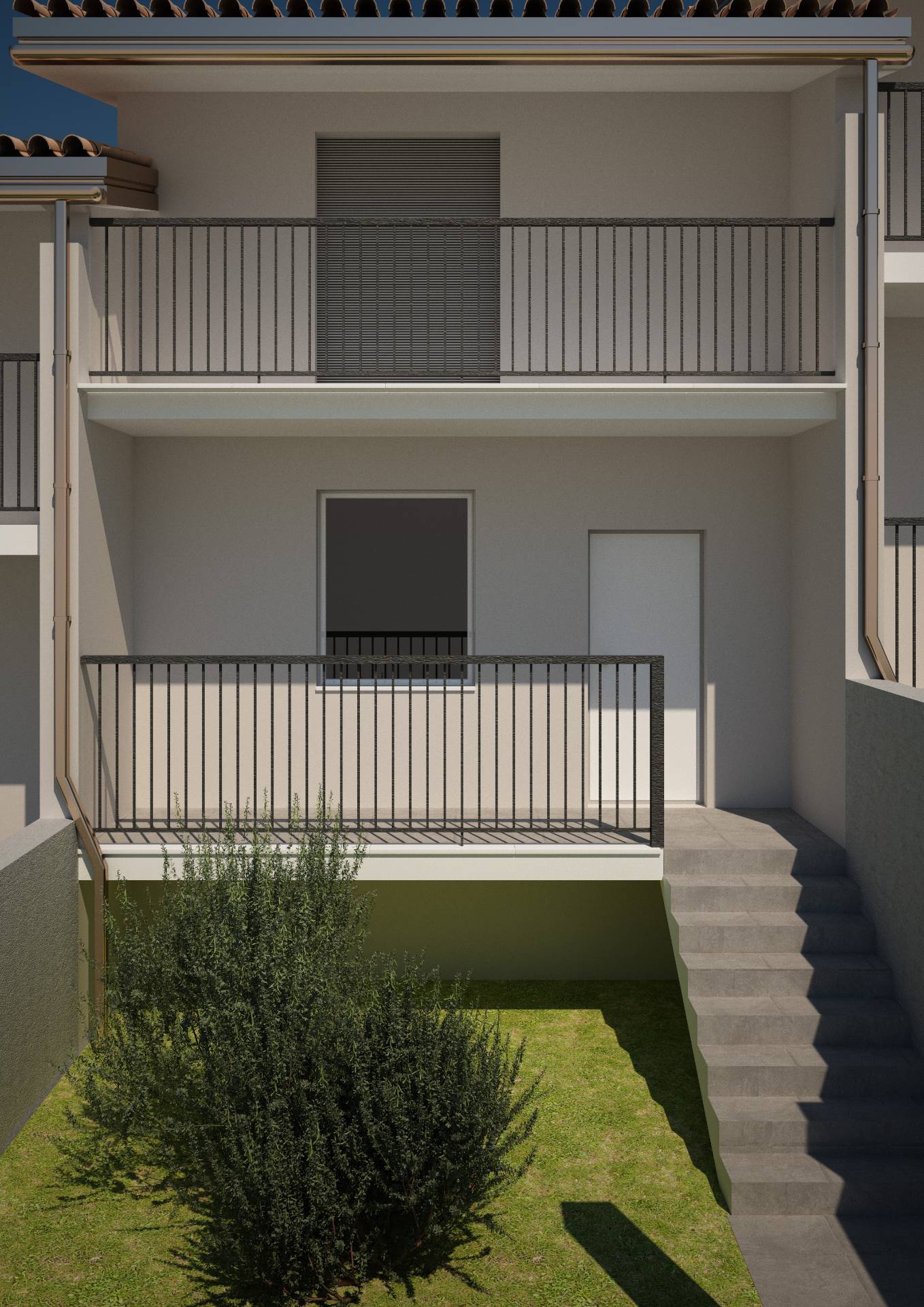 La villetta inoltre dotata di spazi esterni quali balconi che permettono di godere di una bella vista sul giardino privato e colline circostanti.