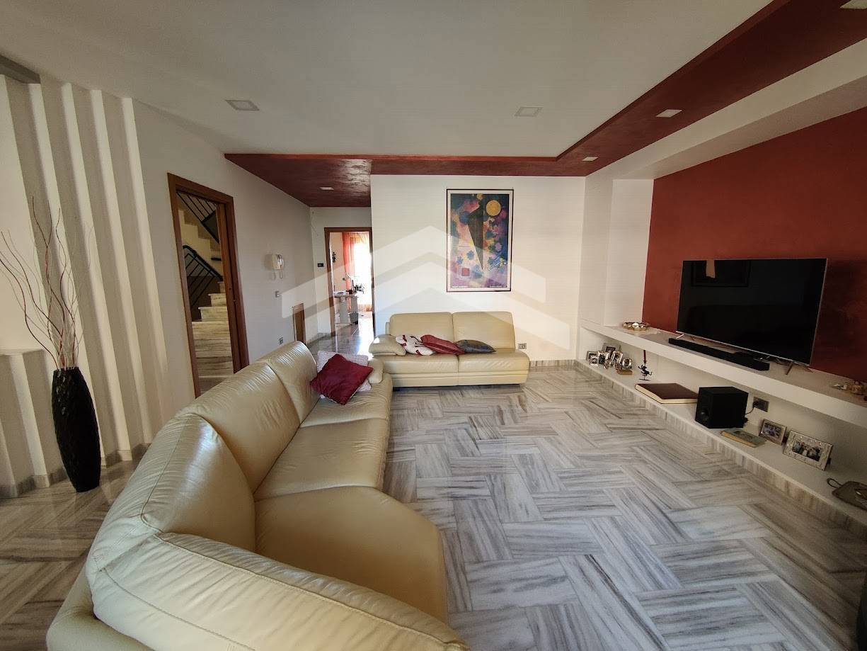La villa, con doppio ingresso, vialetto con meraviglioso albero di agrifoglio e corte restrostante con piccolo giardino, dispone di un ascensore interno che collega tutti i piani, abbellita da rifiniture di pregio, pavimenti in marmo, finestre in legno con vetro camere, apertura vasistas e zanzariere.