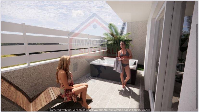 Ogni villa posta su due livelli di 60 mq ognuno.
