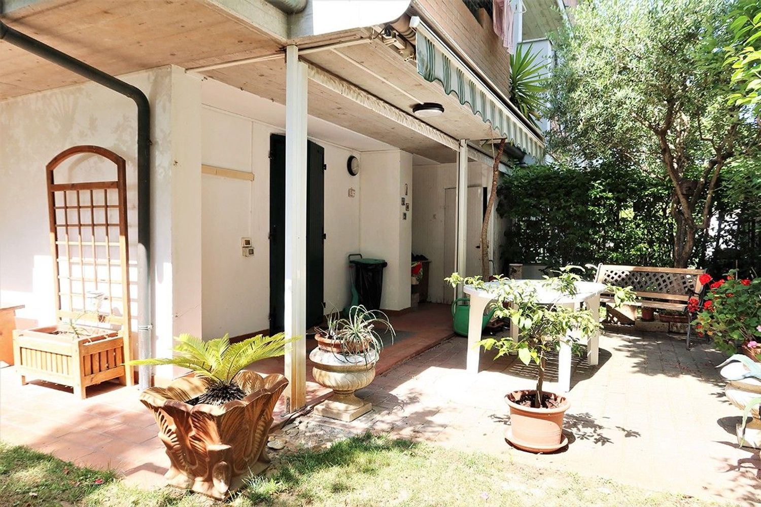 Vendiamo a Pinarella, in contesto ben servito a pochi passi dal mare, villetta a schiera di testa con ampio giardino.