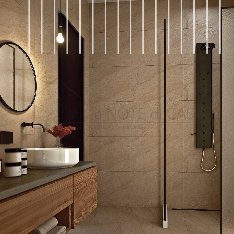 Infissi Pvc a doppio vetro, avvolgibili motorizzati, predisposizione raffrescamento e impianto d'allarme completano la soluzione dall'alto valore qualitativo e funzionale.