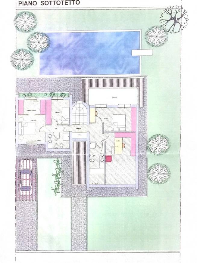 Piano Sottotetto con vani dalle ampie metrature dove ricavare altre 3 camere da letto e 1 studio, 2 bagni e un terrazzo.