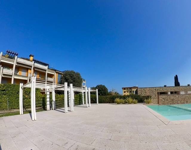 All'interno di un signorile contesto con piscina, questa splendida abitazione vanta ottima esposizione ed un ottimo equilibrio tra lo spazio interno dei locali abitabili e lo spazio esterno dei portici e del giardino privato, fantastico per godersi in tutto relax il clima mite del Lago di Garda.