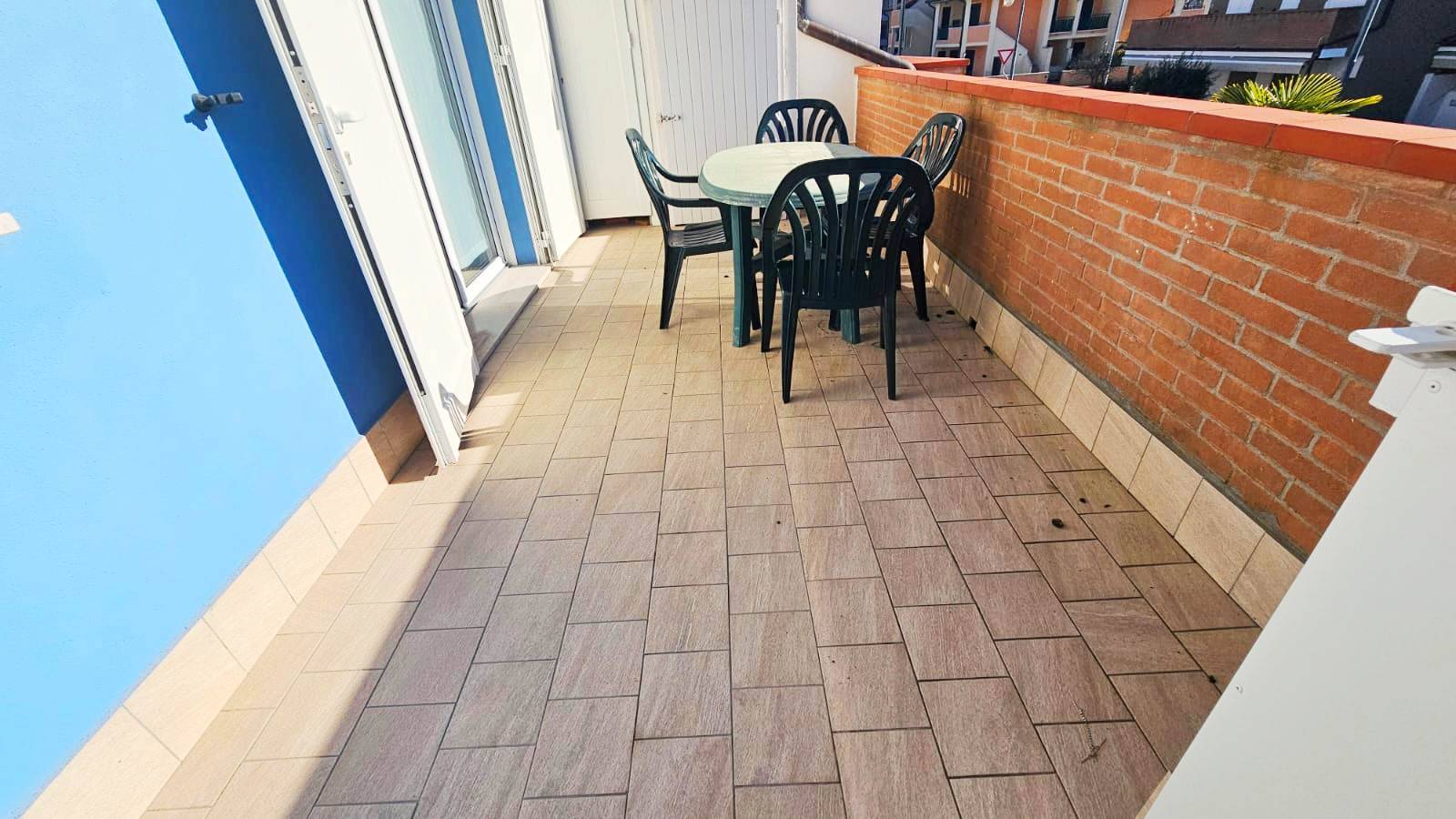 La villetta trilocale al primo piano, situata al Res. Hermitage ci accoglie con il piacevole giardinetto mentre lo spazioso terrazzo attrezzato col barbecue e la tenda elettrica per serate indimenticabili ! Allinterno spazi capienti sia nella generosa zona giorno con il divano letto e la cucina su misura sia nei due reparti notte , una con il letto matrimoniale e un altra con 2 letti a castello, quindi capiente per 8 persone! Nell antibagno un utile armadio, bagno con box doccia, un ulteriore grande terrazzo con tenda.