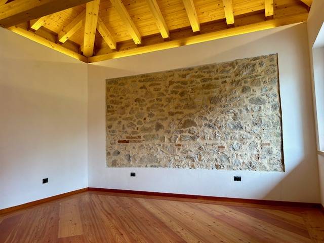Finiture di alta qualit: serramenti Wolf Fenster, porte interne legno massello, pietre faccia vista al piano terra possibilit di acquistare separatamente scoperto esclusivo con un giardino di circa 360 mq. L'immobile gode di canne fumarie per eventuale riscaldamento a legna.