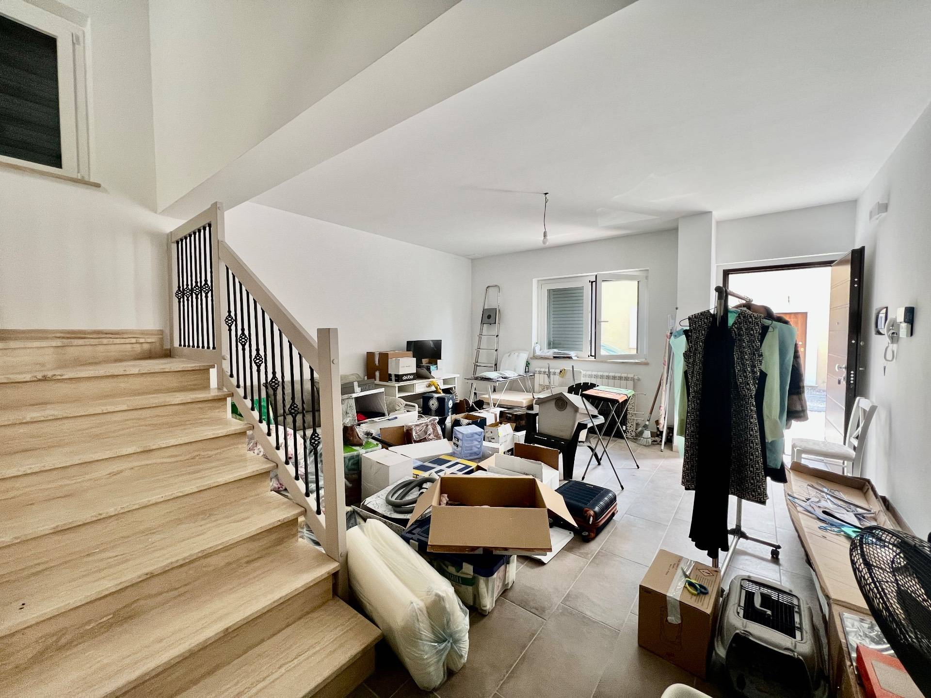 La struttura antisismica realizzata in cemento armato nel 2017 presenta rifiniture di ottimo capitolato come grss porcellanato su tutta la superficie eccetto il piano sottotetto con laminato, tetto in legno ventilato, rivestimento esterno con cappotto in polistirene dello spessore di cm 10, infissi doppio vetro in PVC con anta a ribalta e persiane in PVC regolabili, canna fumaria, scala rifinita in marmo e legno con ferro battuto, portone blindato, classe energetica "B" con impiantistica autonoma e caldaia a condensazione, cucina su misura compresa nel prezzo mai utilizzata.