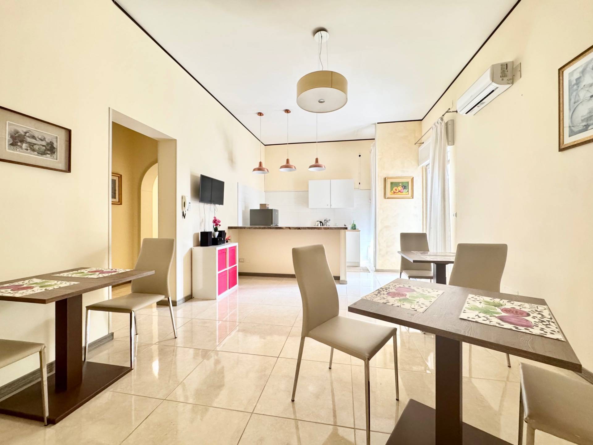 Con una superficie di circa 170 m, si accede alla dimora da un ingresso indipendente che conduce ad un luminoso open space dal design contemporaneo, dove la cucina a vista, la zona pranzo e il living dialogano armoniosamente.