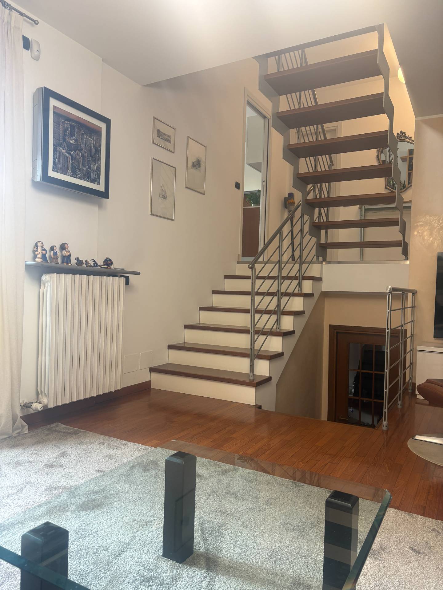Salendo di pochi gradini troviamo invece un ampio open space, estremamente versatile, ideale come studio, sala da pranzo o ulteriore zona living.