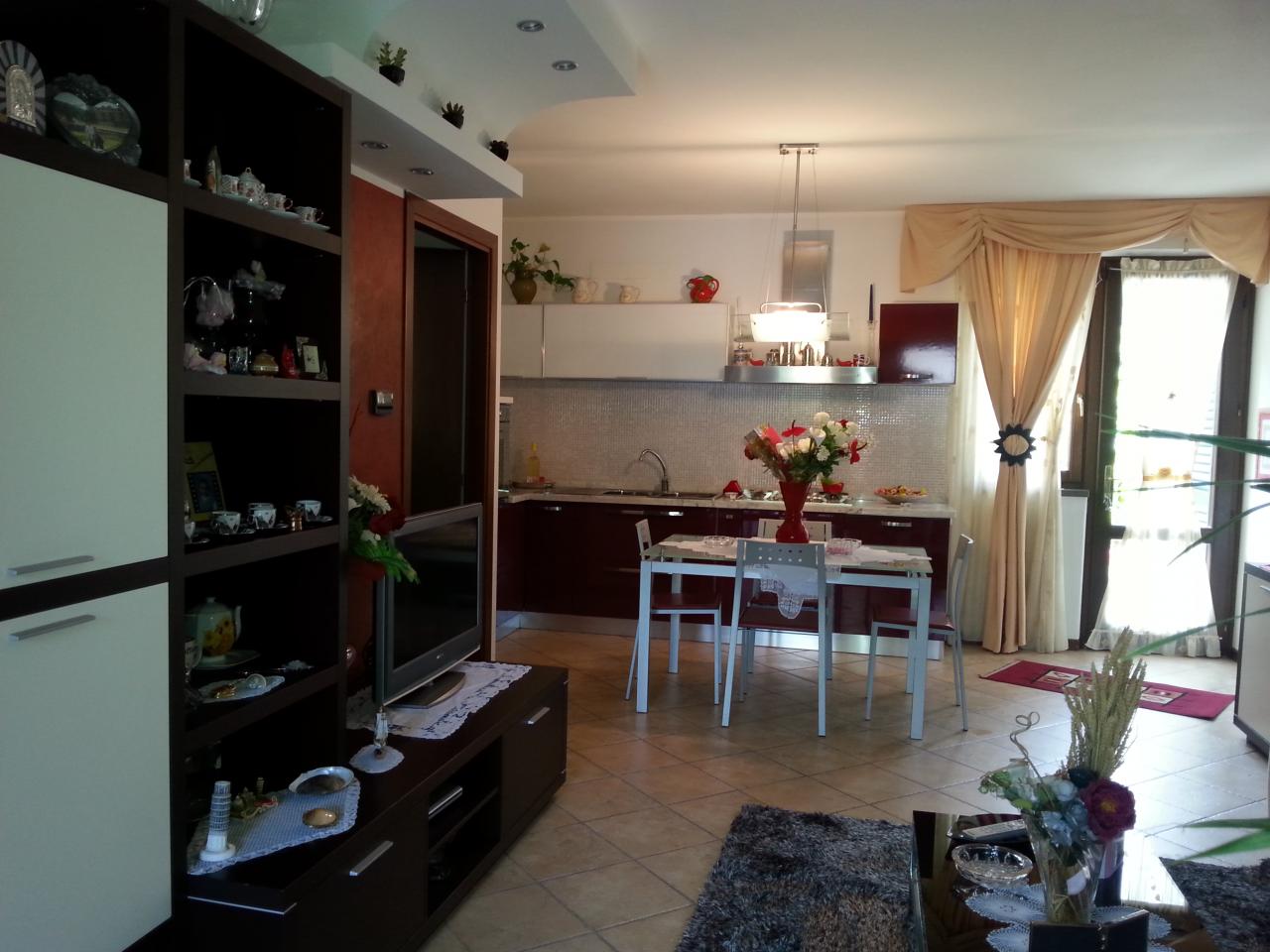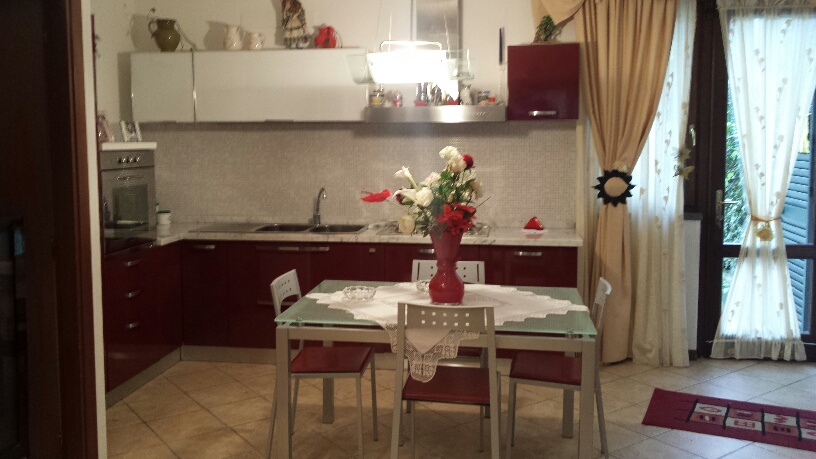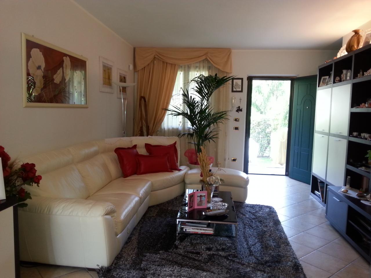 vendesi in zona collinare, bella villetta in quadrifamiliare corredata da ampio giardino su due lati e due posti auto. l'immobile disposto su vari livelli, e' composto da grande taverna con camino , cucina, bagno e ripostiglio, al piano terra: soggiorno con cucina a vista, ripostiglio uso lavanderia, al piano primo :due camere, bagno,spaziosa mansarda con camera/studio.