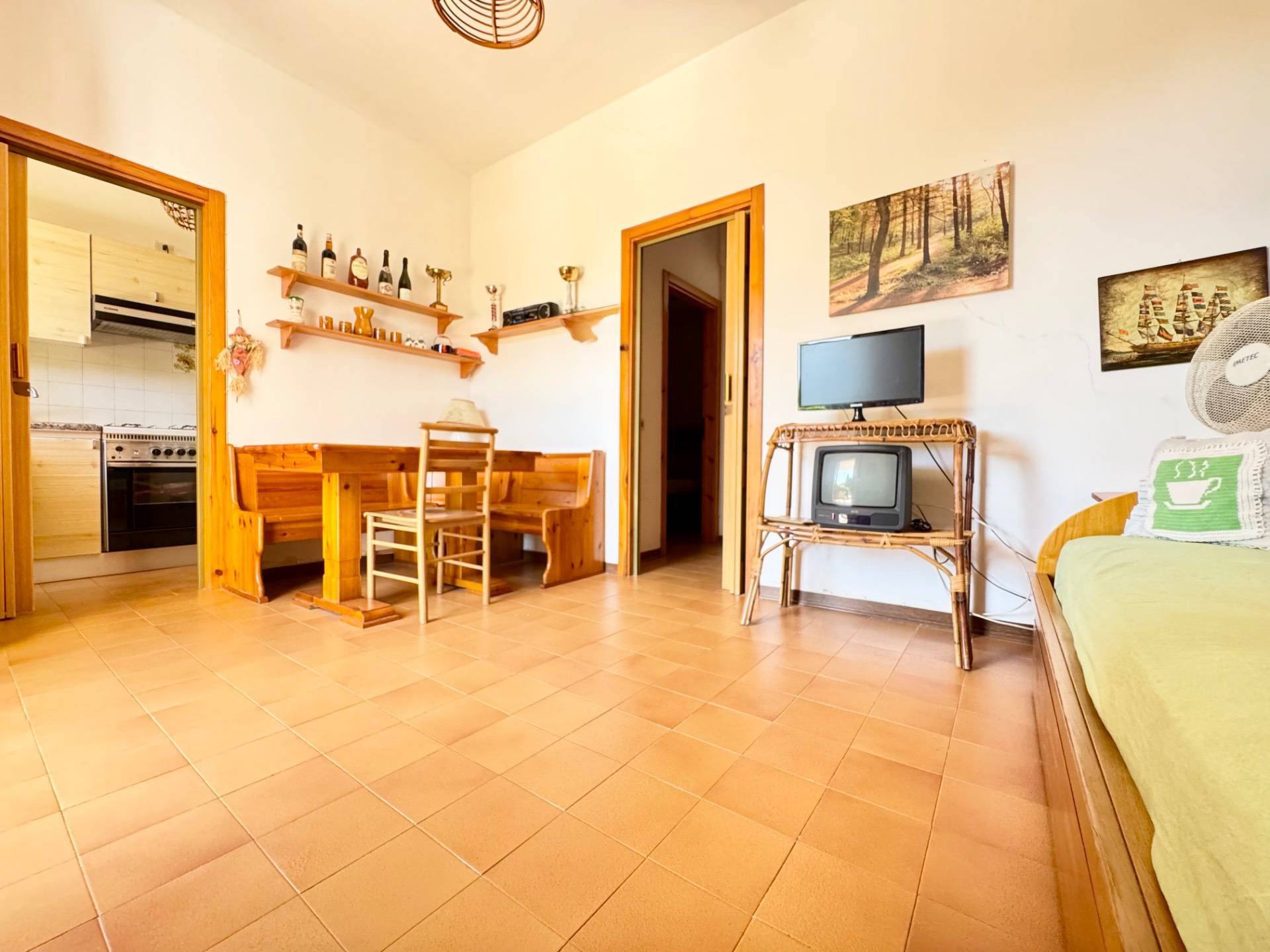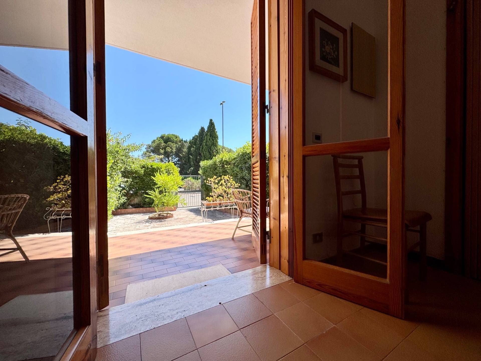 Limmobile si presenta in buone condizioni ed composto da un giardino antistante ideale per il relax, soggiorno accogliente con cucinotto separato, due camere da letto, due bagni ed un giardino retrostante attrezzato con barbecue in pietra, perfetto per pranzi e cene allaperto.