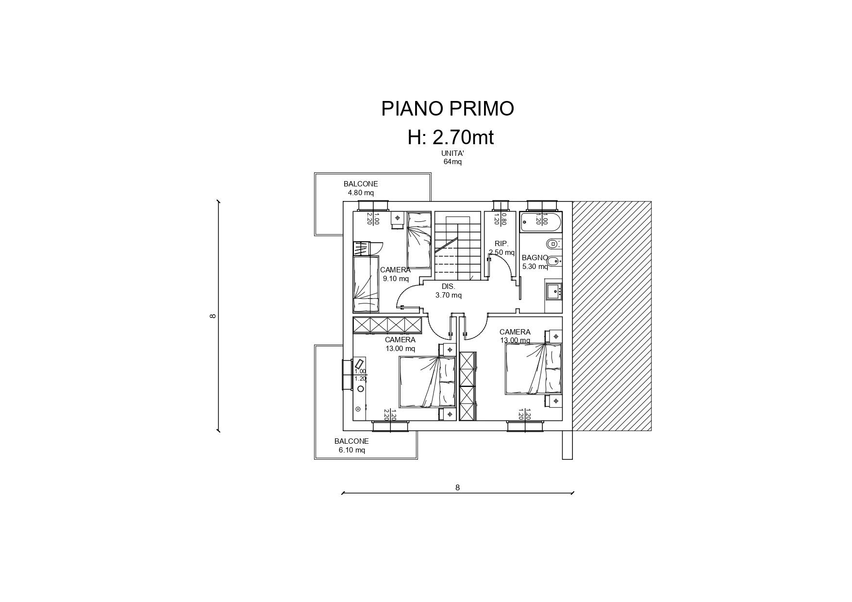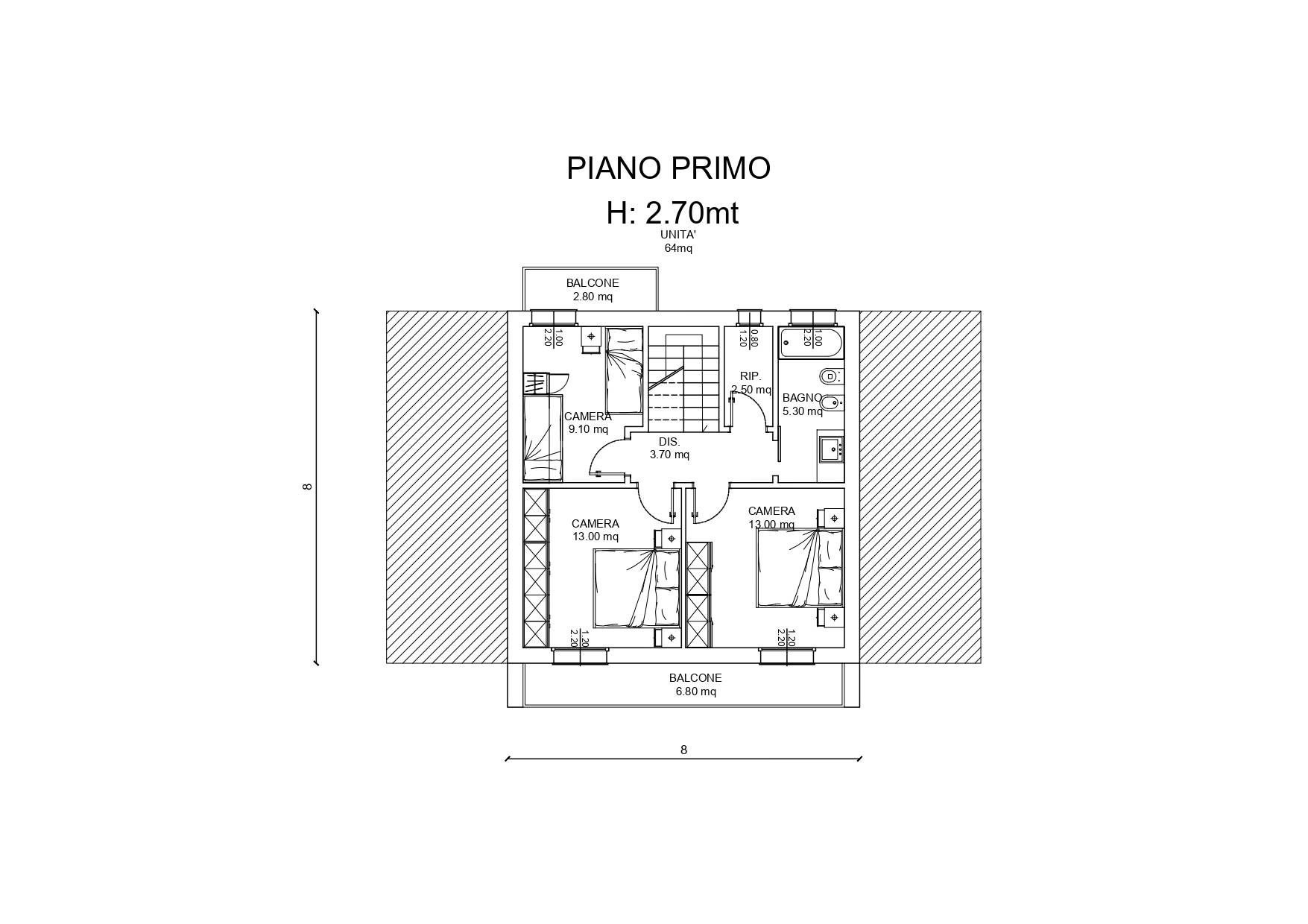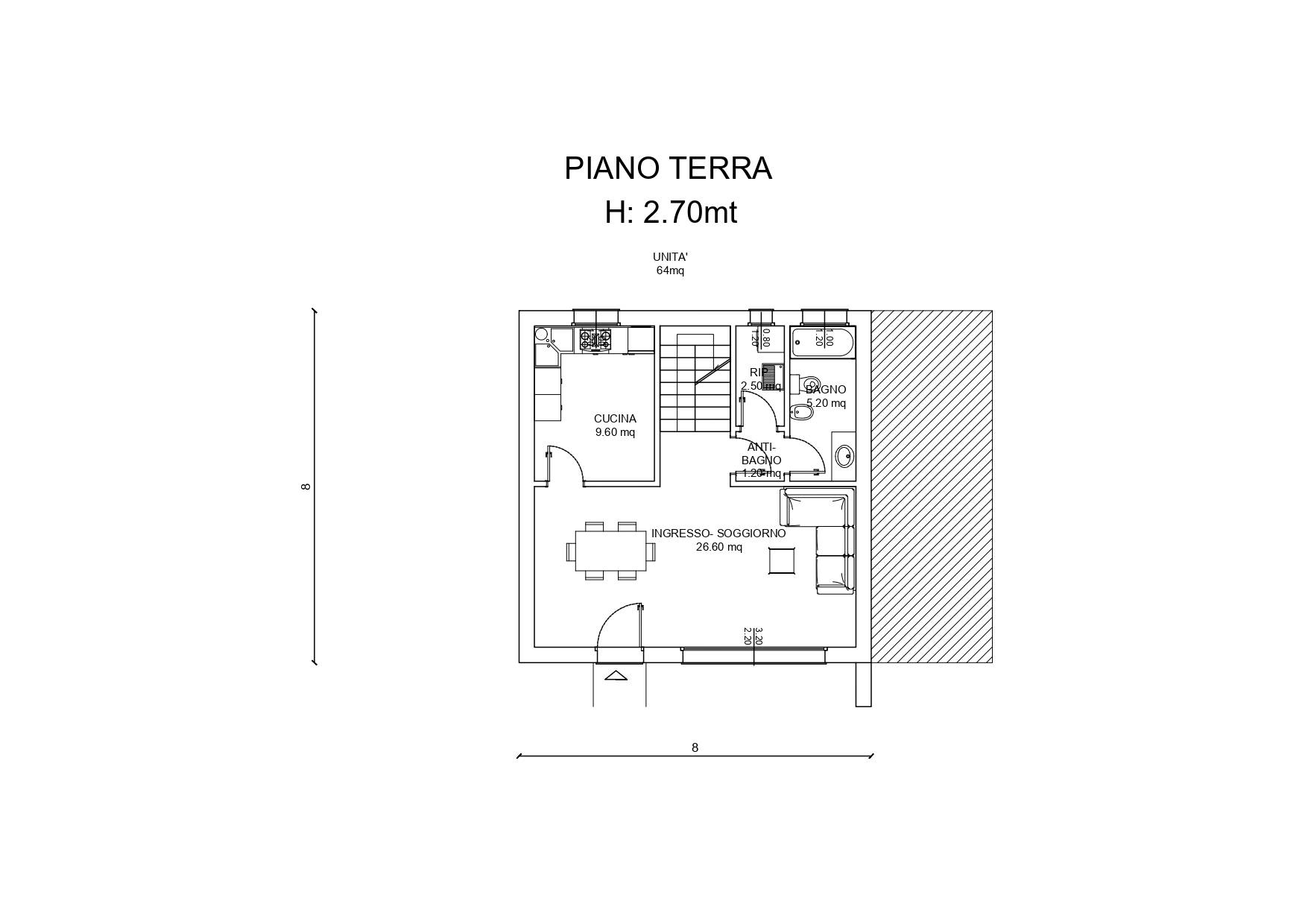 Ciascuna villetta del complesso a schiera si articoler su tre livelli, per un totale di circa 190 mq: - piano terra composto da living, cucina abitabile separata, bagno di servizio e ripostiglio; - primo piano che ospiter la zona notte, con tre camere, bagno e due balconi; - piano sotto strada costituito da un enorme garage/magazzino.