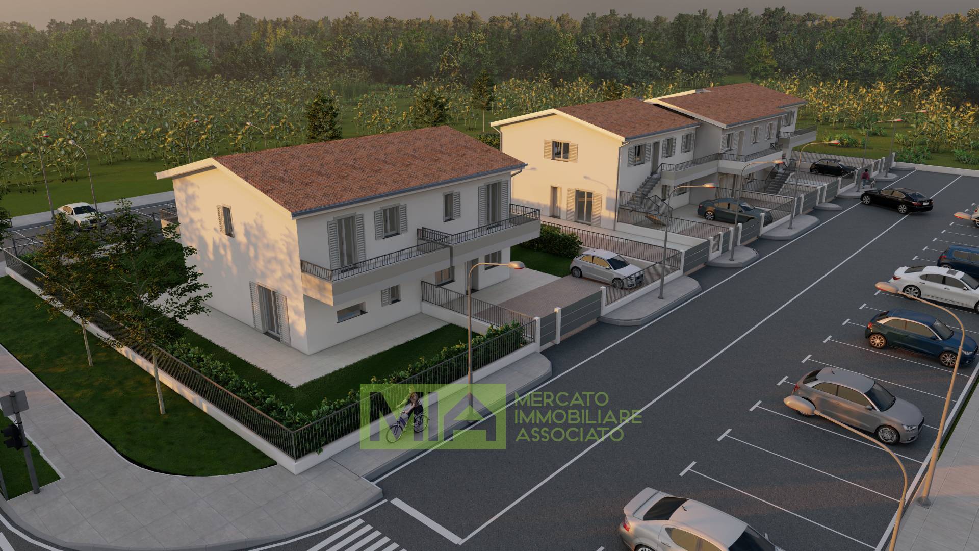 Il complesso costituito da 8 unit indipendenti con metrature dai 104 ai 125 mq, senza condominio, ampi Giardini privati, Parcheggi pubblici esterni e posto auto interno privato.