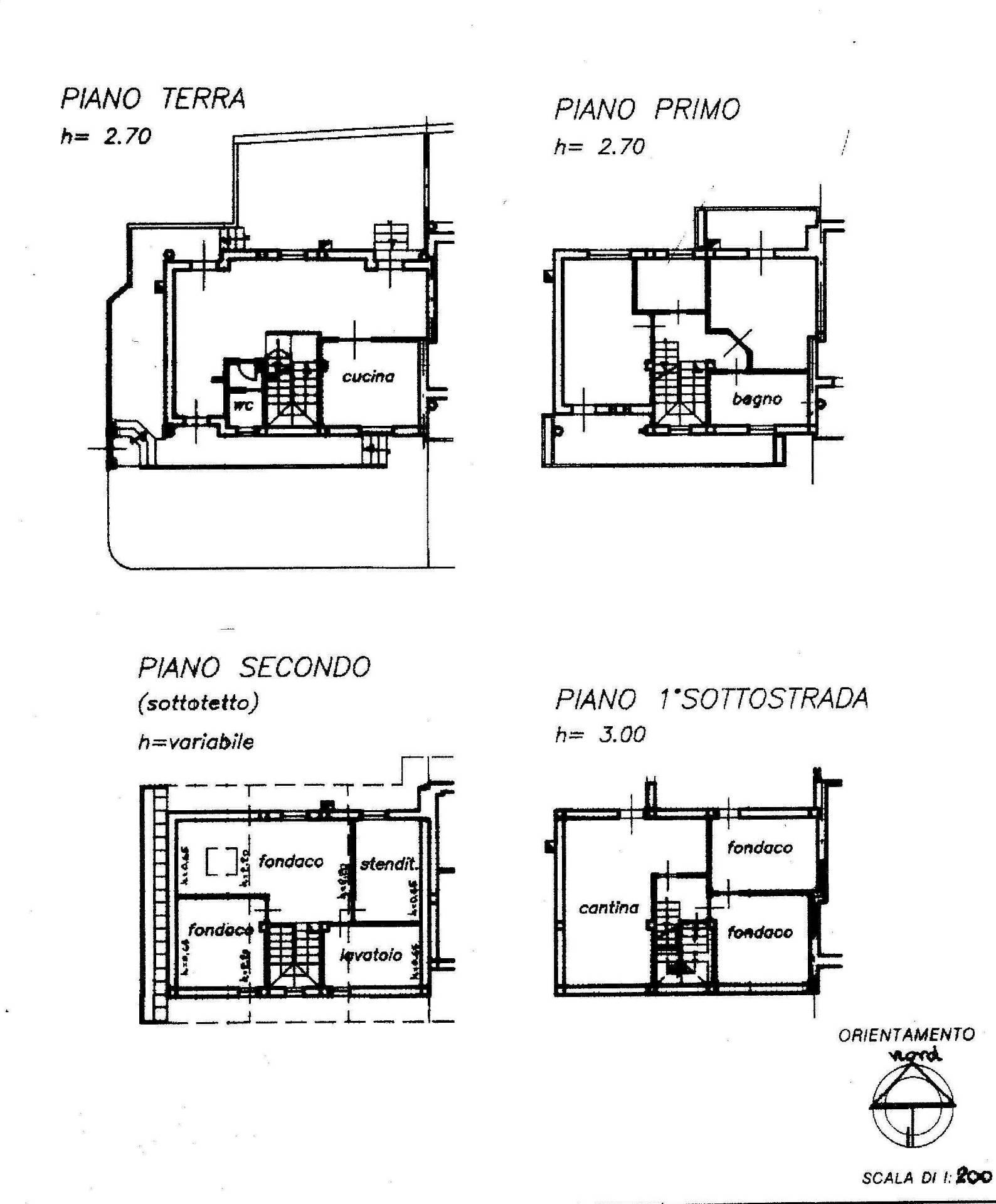 La residenza composta da un piano primo sottostrada formato da cantina, due fondaci per una superficie di circa 56 mq, oltre ad un garage di 24 mq. Piano terra o rialzato formato da ingresso, soggiorno, cucina, bagno con antibagno per una superficie di 61 mq circa oltre due corti pertinenziali poste ai lati nord e sud dell'edificio che sviluppano una superficie di 36 mq circa e un balcone su tre la ti per mq 30 circa.