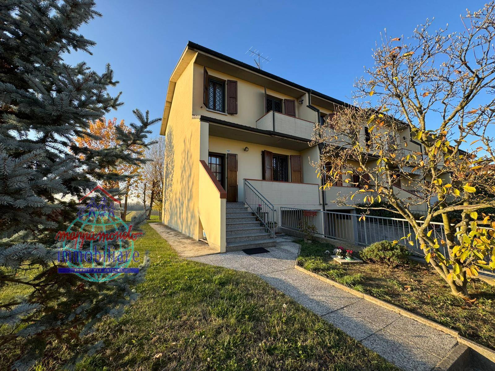 OSTERIA NUOVA DI SALA BOLOGNESE , IN COMPARTO DI SOLE VILLETTE E CON SPAZI VERDI, proponiamo LUMINOSA e OTTIMAMENTE TENUTA , VILLA a SCHIERA DI TESTA cosi 'composta : Piano Rialzato: ingresso su ampio soggiorno , terrazzo , cucina abitabile con accesso al giardino , bagno con doccia e giardino di proprieta .' Piano Primo : camera matrimoniale , camera doppia con balcone ,camera singola e bagno con vasca . Piano Seminterrato : Ampio Garage doppio di mq.49 e Cantina OTTIME FINITURE: scala in granito e in soggiorno , infissi in legno con doppio vetro, scuri esterni in legno , cancelletti di sicurezza , zanzariere ,impianto d' allarme ,termosifoni in ghisa , citofono in ogni piano, tendone parasole in cucina , barbecue, caldaia a tenuta stagna del 2009 , climatizzatori con pompa di calore , pavimenti in parquet nelle camere . IMPIANTI AUTONOMI E CERTIFICATI.