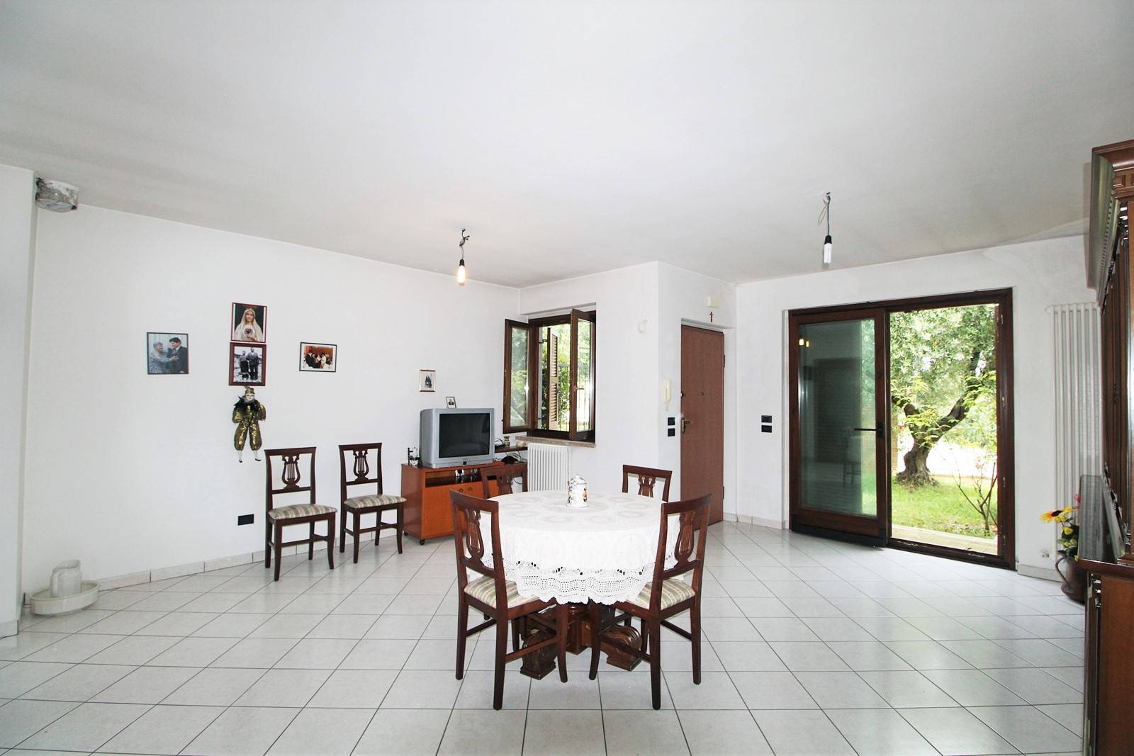 Piano terra di circa mq. 90,00 con soggiorno e cucina separata e abitabile, zona notte con tre camere da letto e un bagno, giardino antistante.