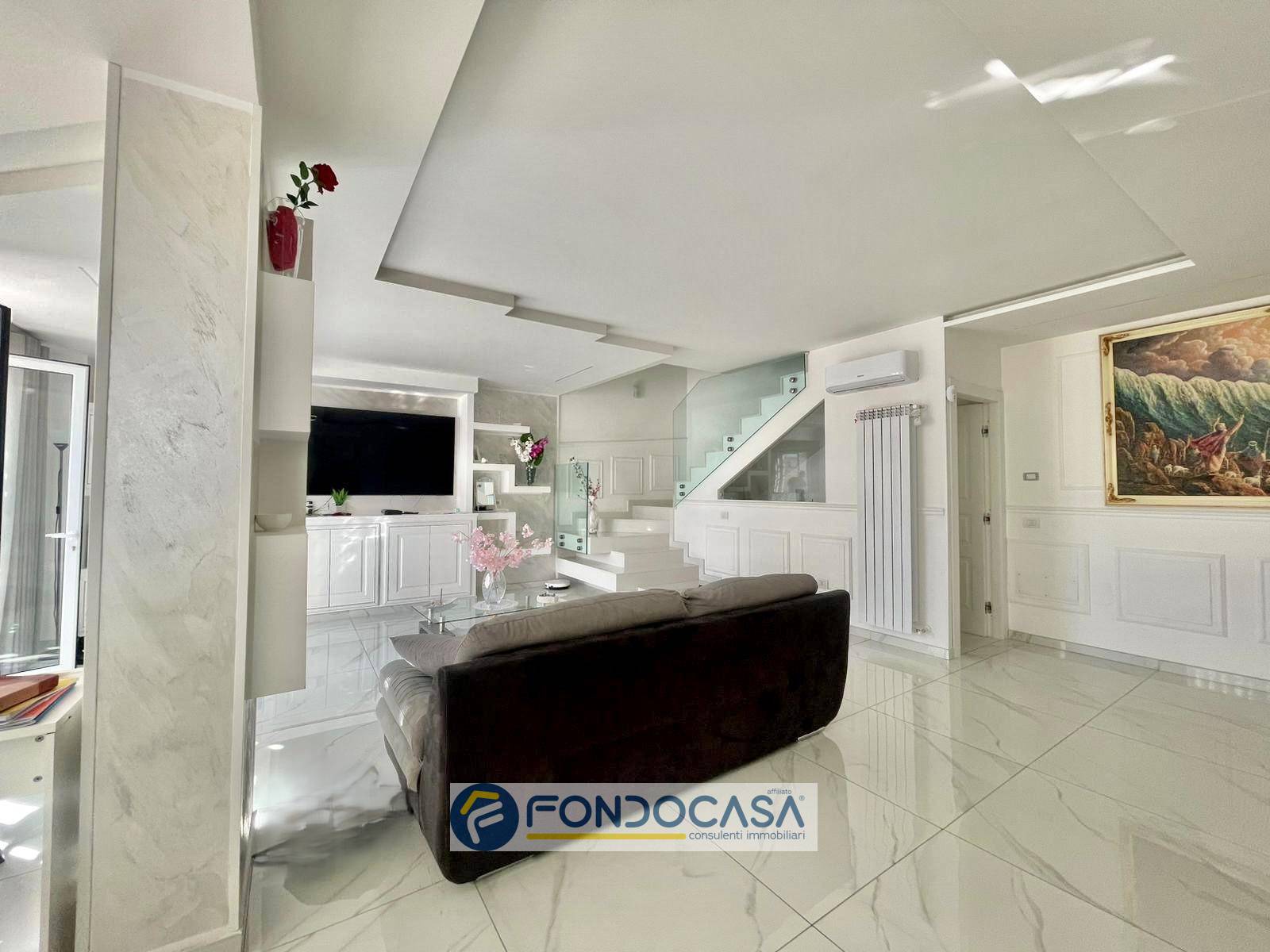 Piano Terra: Ampio open space luminoso con zona living e cucina moderna a vista Bagno di servizio Ripostiglio/sgabuzzino Taverna (piano seminterrato): Spaziosa zona relax con cucina attrezzata e salone con camino Bagno completo Ripostiglio Primo Piano: Camera matrimoniale con cabina armadio e Bagno en suite dotato di vasca idromassaggio e doccia Bagno en suite dotato di vasca idromassaggio e doccia Zona lavanderia Secondo Piano (zona notte): Due ampie camerette doppie Bagno con sanitari moderni Terzo Piano: Splendido terrazzo panoramico con vista sul paese e suggestivo affaccio sul Vesuvio Dotazioni e impianti: Bagno su ogni piano, compresa la taverna Controsoffittatura con illuminazione LED moderna in tutti gli ambienti Impianto di videosorveglianza con telecamere esterne e sistema di antifurto Camino e stufa a pellet canalizzata per riscaldamento omogeneo Riscaldamento a zone con valvole indipendenti per ottimizzare consumi Predisposizione climatizzatori in ogni stanza Impianti tecnologici di ultima generazione Questa propriet rappresenta una soluzione abitativa esclusiva e pronta alluso, ideale per chi cerca una casa moderna, sicura e confortevole, con spazi ben distribuiti e panorami unici. Contatta l'inserzionista