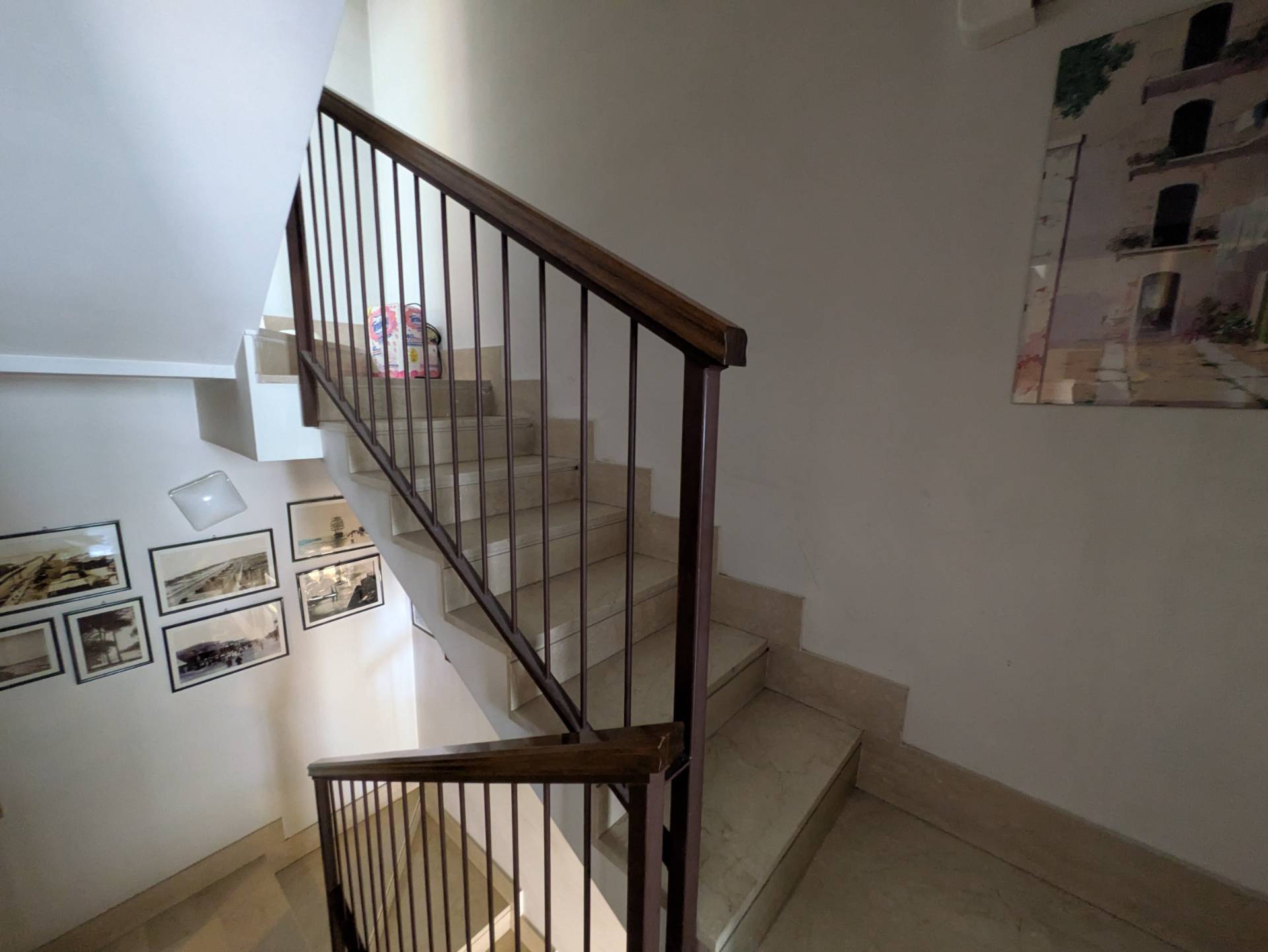 Al primo piano sono presenti tre camere da letto, un ampio balcone e due bagni, uno cieco con doccia ed uno finestrato con vasca.