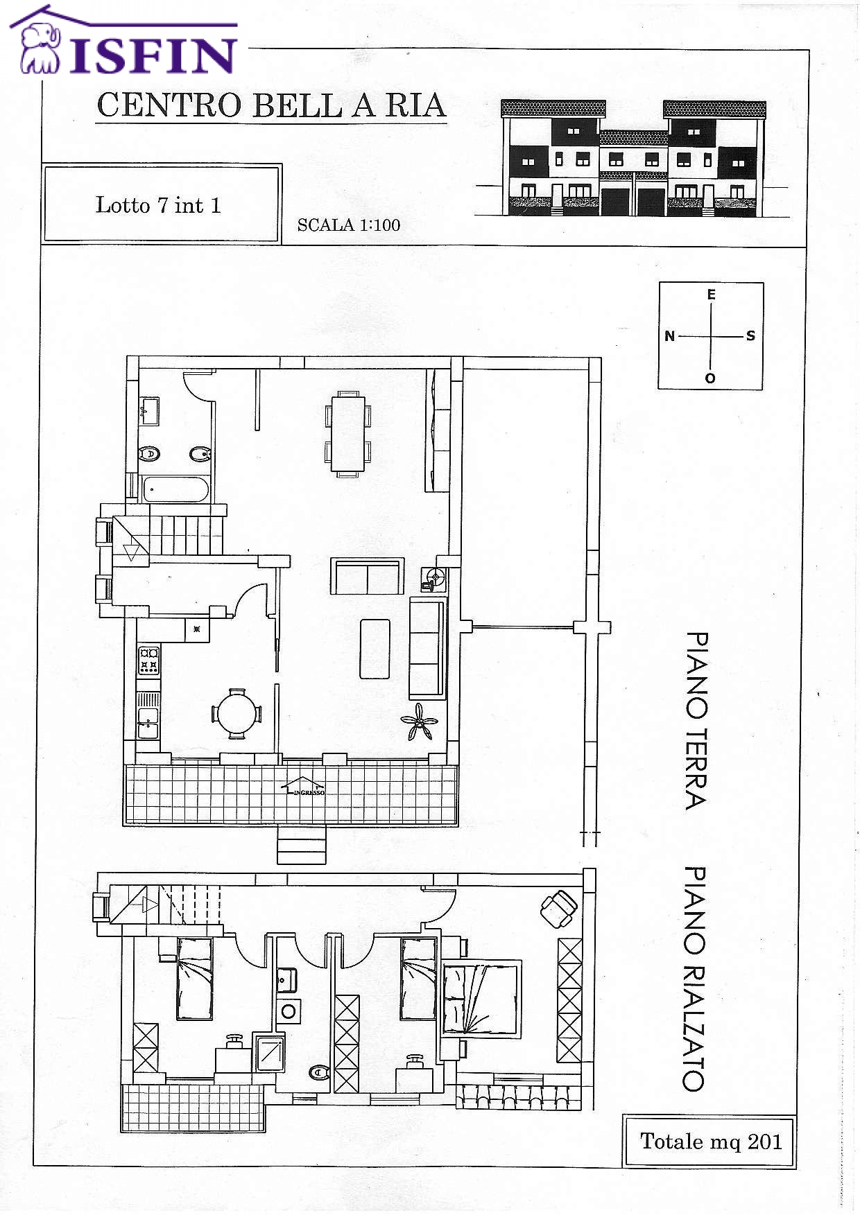 A Zumpano in Viale della Resistenza (localit Mennavence) ISFIN Immobiliare Vende una porzione di villetta trifamiliare angolare di nuova costruzione di circa 200 mq su due livelli cos composta: ingresso - salone, cucina abitabile con lavanderia, bagno, portico e giardino di circa mq 180 al piano terra, tre camere, bagno e balconi al primo piano.