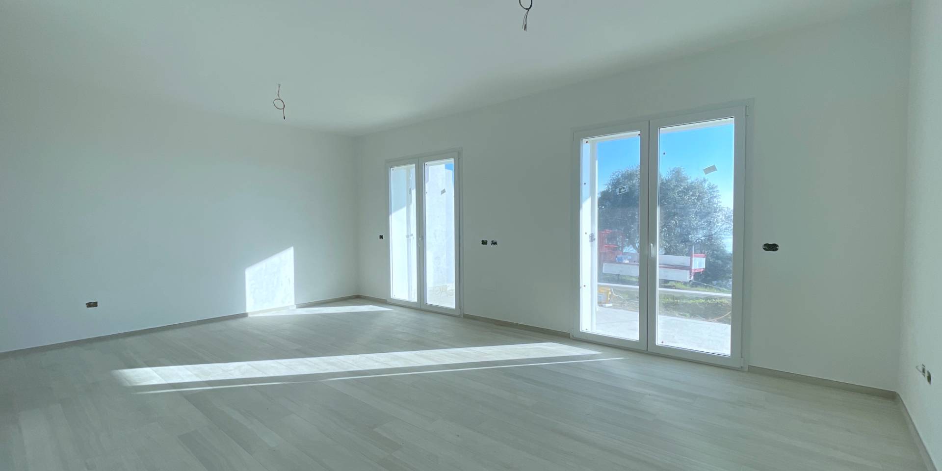 Villino bifamiliare in corso di costruzione, dallo stile contemporaneo e pulito, sviluppato su due livelli per una superficie coperta complessiva di circa 135 m. Una soluzione moderna, pensata per chi cerca comfort, efficienza e spazi ben distribuiti, senza rinunciare alla vista mare. Al piano terra, di circa 66 m, lingresso conduce ad un ampio soggiorno luminoso con affaccio diretto sul giardino e una splendida vista aperta verso il mare, cucina abitabile separata, bagno e comodo antibagno ad uso lavanderia.